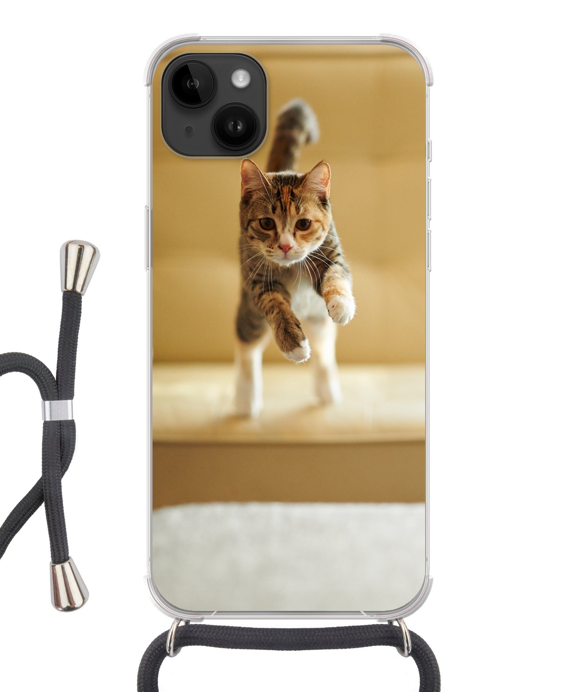 Die Katze springt vom Sofa auf den weichen Stuhl.Kompatible Geräte | Apple iPhone 14 Plus |