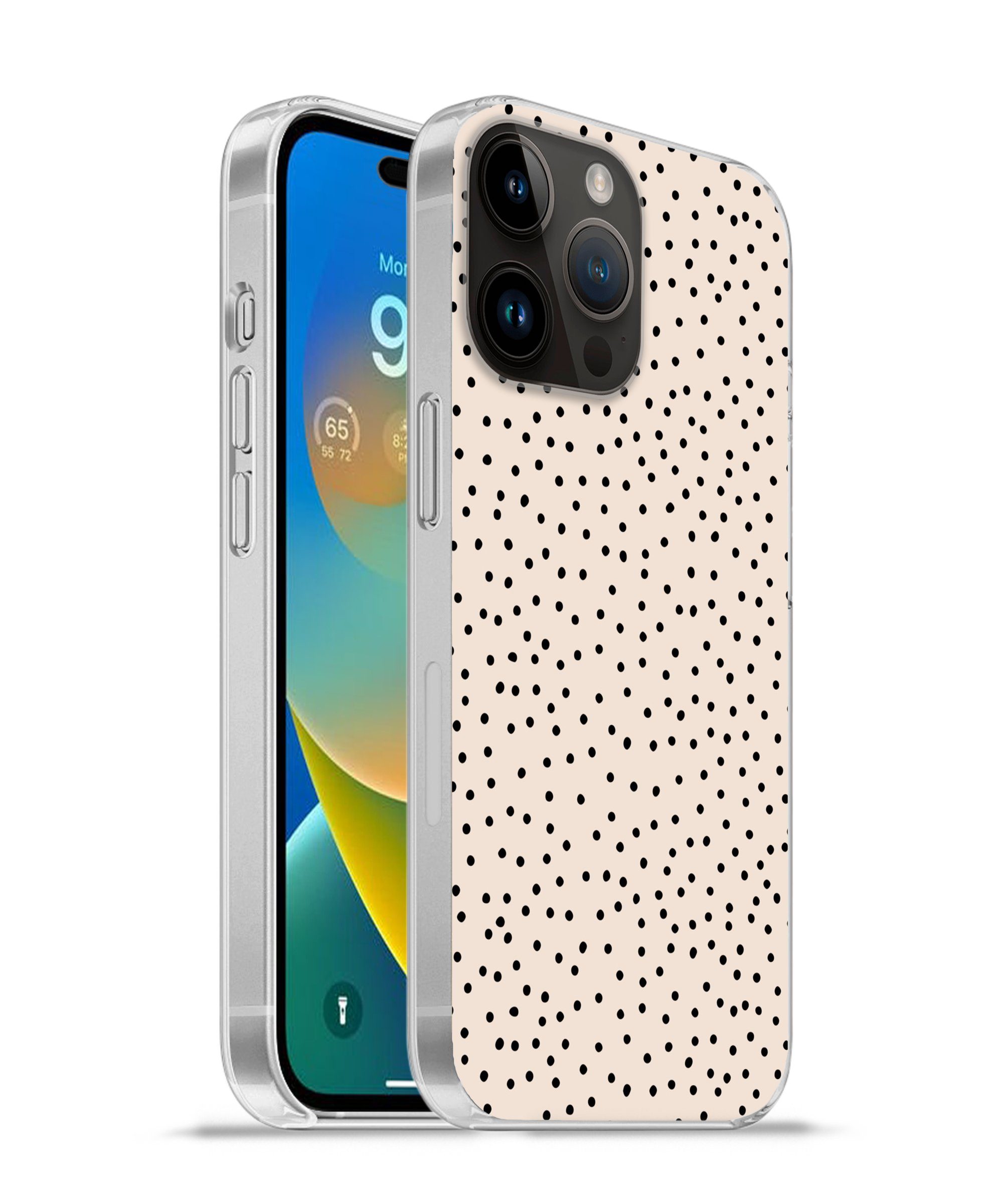 Muster aus schwarzen Punkten auf beigem Hintergrund.