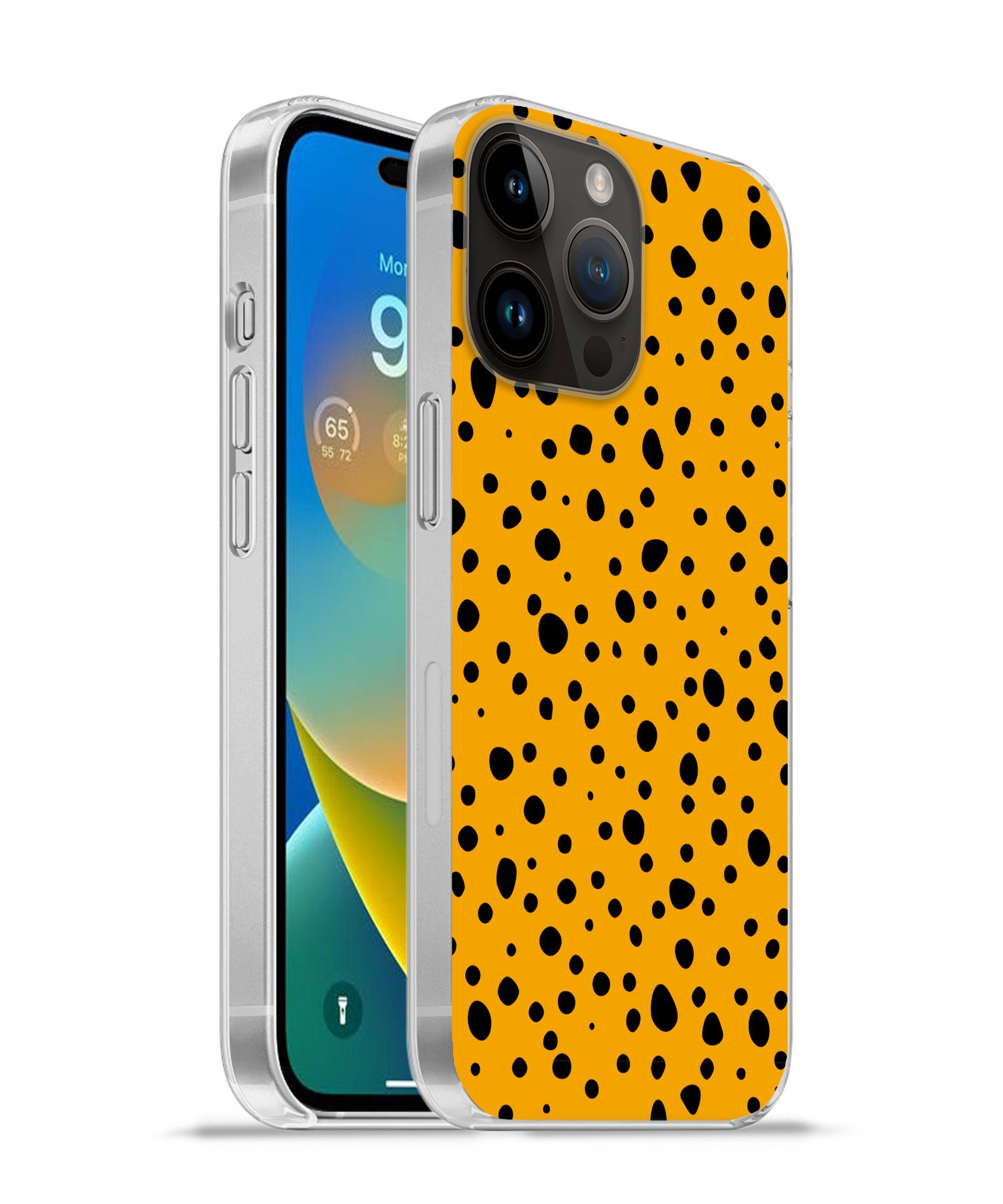 Muster aus schwarzen Punkten auf orangefarbenem Hintergrund.