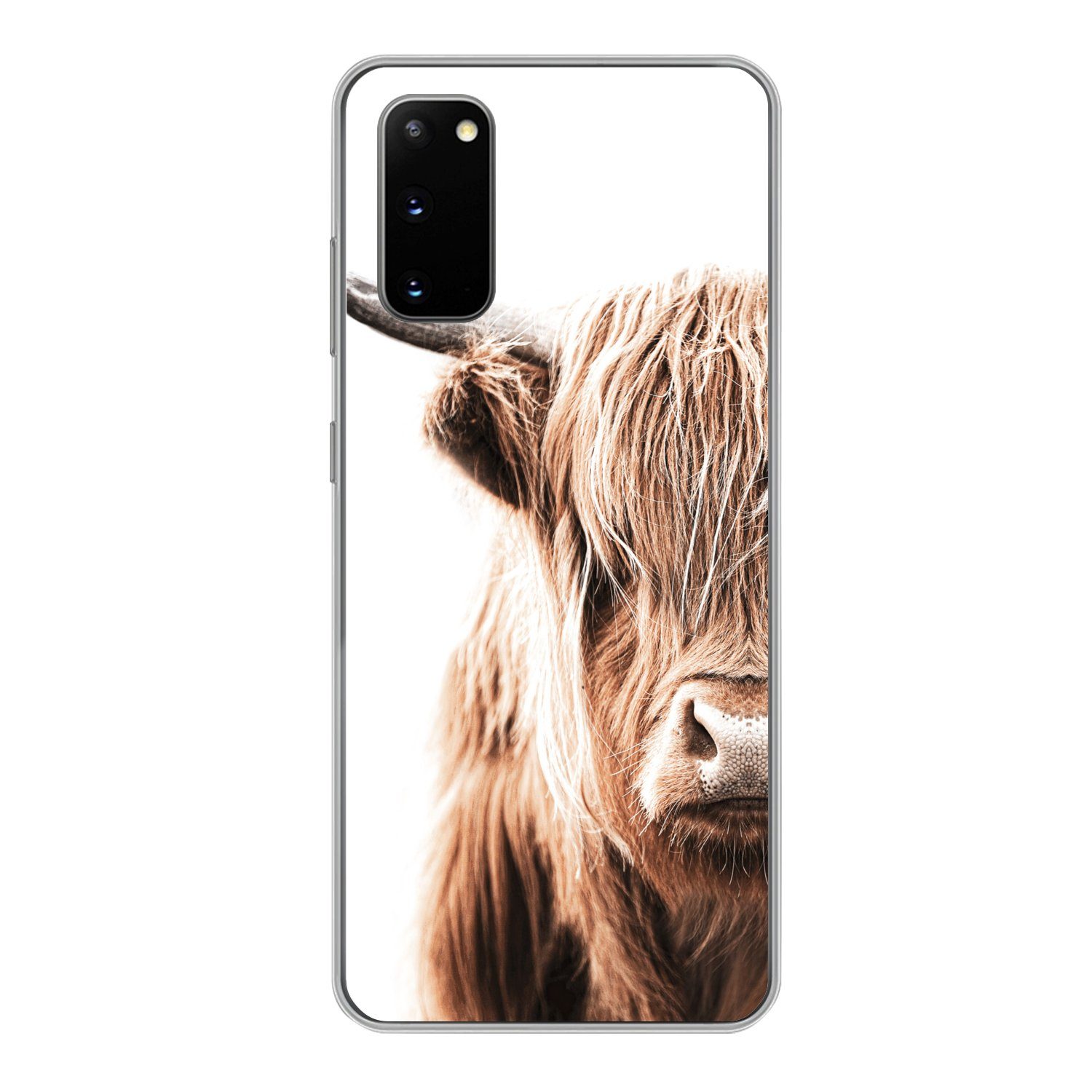 Nahaufnahme eines schottischen Highlanders vor weißem Hintergrund.Kompatible Geräte | Samsung Galaxy S20 |
