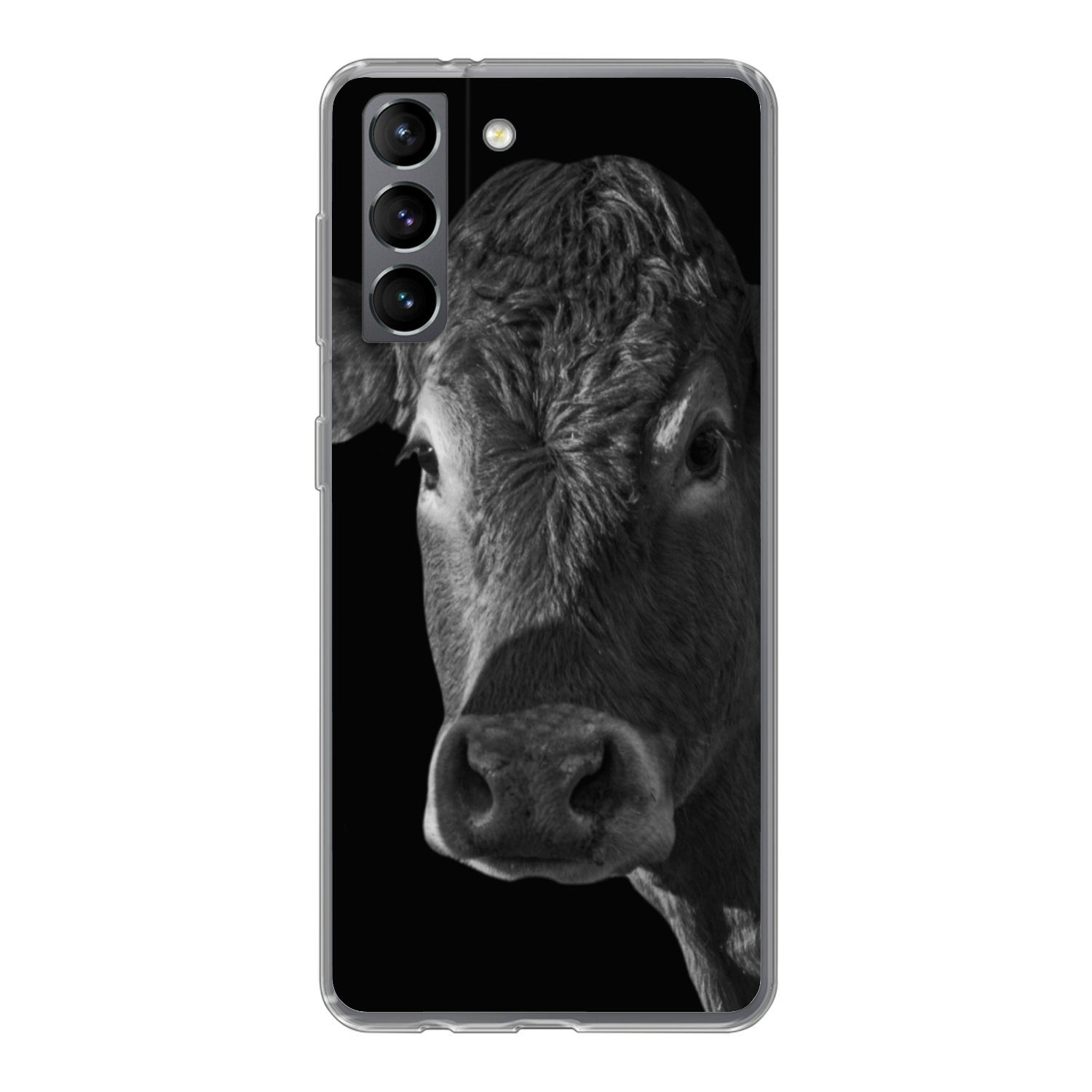 Schwarz-Weiß-Porträt einer Kuh.Kompatible Geräte | Samsung Galaxy S21 |
