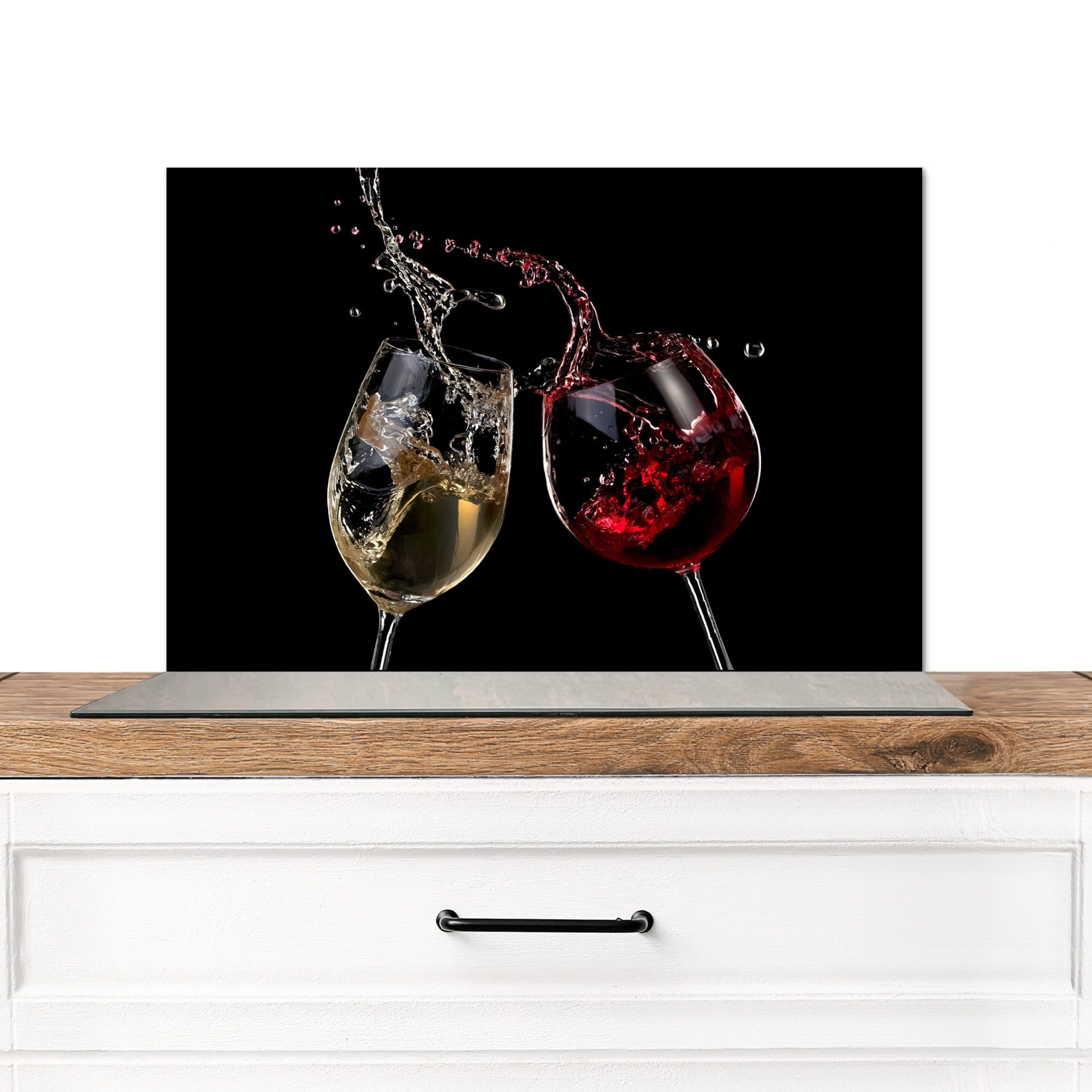 Zwei Gläser Wein, bei denen der Schnaps herausspritzt.