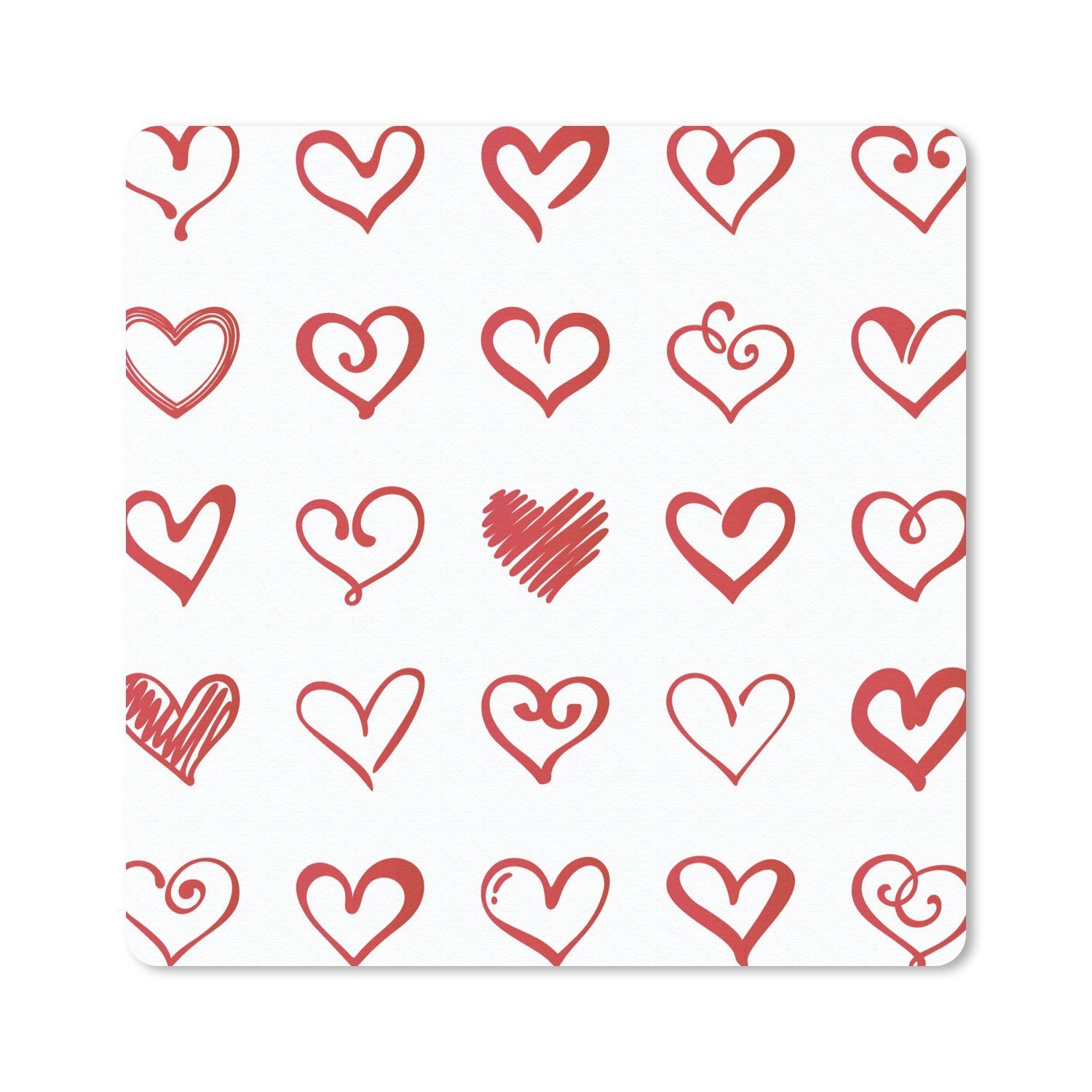 Eine beeindruckende Illustration mit Herzen in verschiedenen Formen. Die Herzen sind in Fünferreihen angeordnet und haben alle eine andere Form.