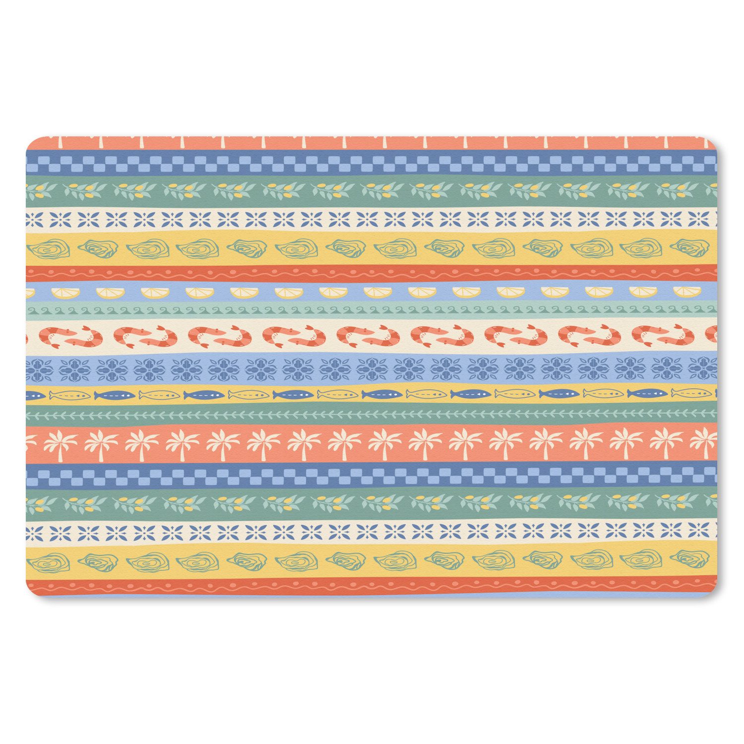 Helle horizontale Streifen in einem graugrünen Farbton wechseln sich unregelmäßig auf einem weißen Hintergrund ab. Die Linien haben einen wellenförmigen, handgezeichneten Look und vermitteln eine ruhige, maritime Atmosphäre.