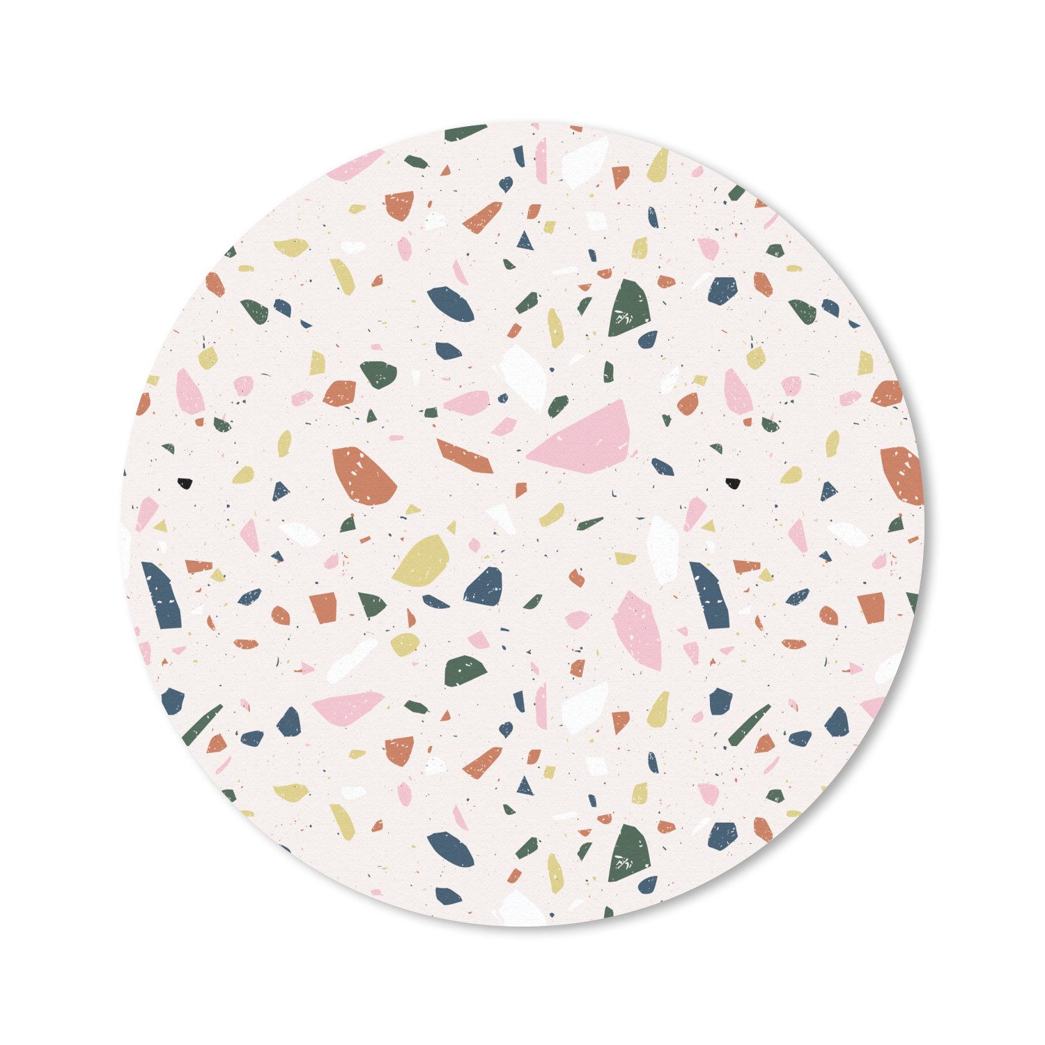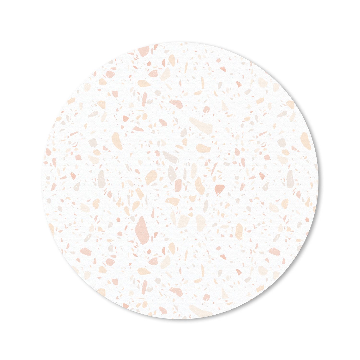 Der cremefarbene Hintergrund ist mit Fragmenten in zartem Rosa, Hellblau, Goldgelb und Schwarz übersät. Die farbenfrohen Teile bilden ein harmonisches und modernes Muster mit einem verspielten und raffinierten Charakter.
