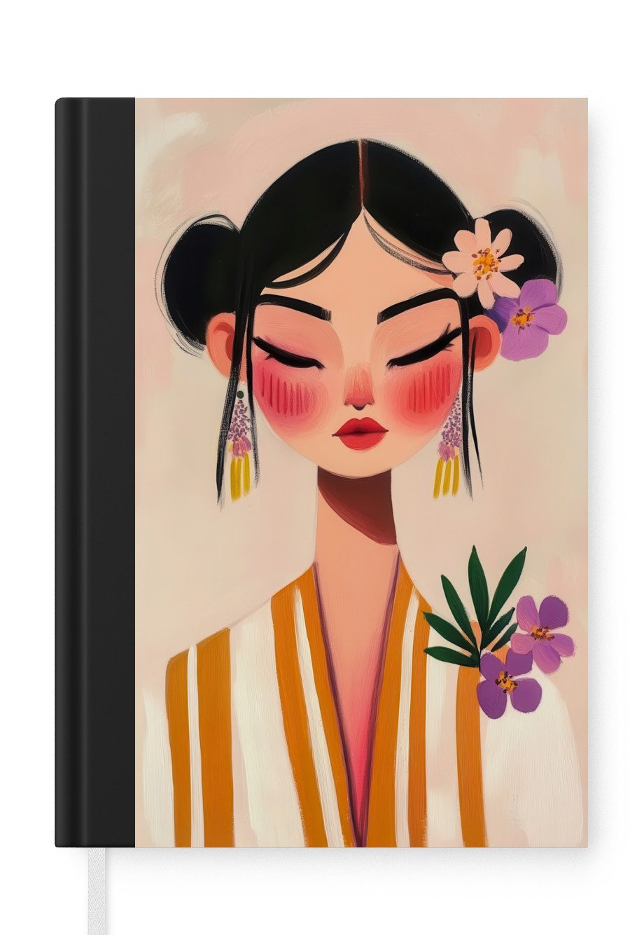 Illustration einer Frau mit geschlossenen Augen, dunklem Haar in zwei Dutts, Blumen im Haar und umgeben von grünen Blättern vor einem weichen pastellfarbenen Hintergrund.Anzahl Seiten | 99 Seiten |