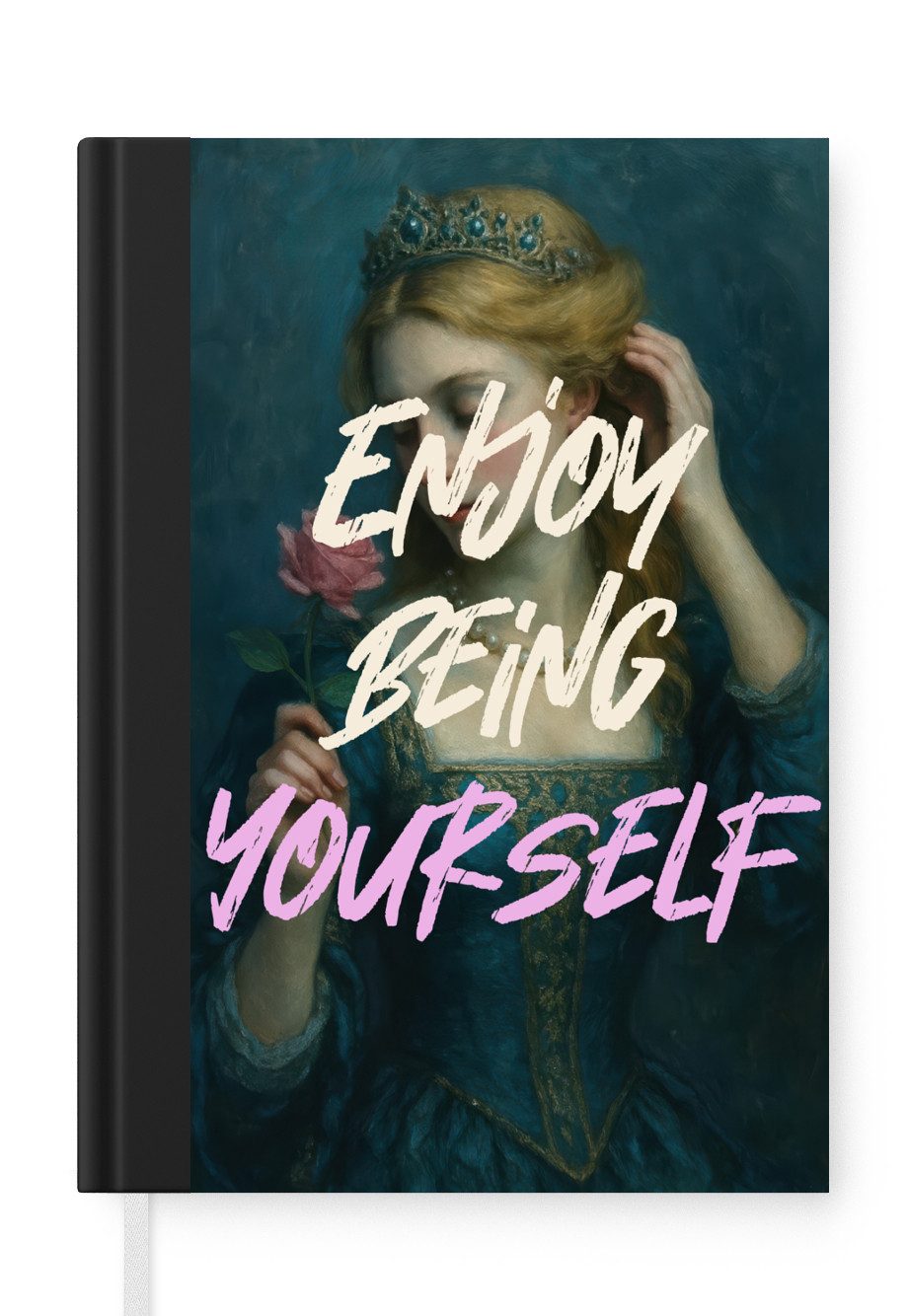 Eine Frau mit Krone und blauem Kleid riecht an einer Rose, während über ihrem Porträt der Text "ENJOY BEY YOURSELF" steht.Anzahl Seiten | 99 Seiten |