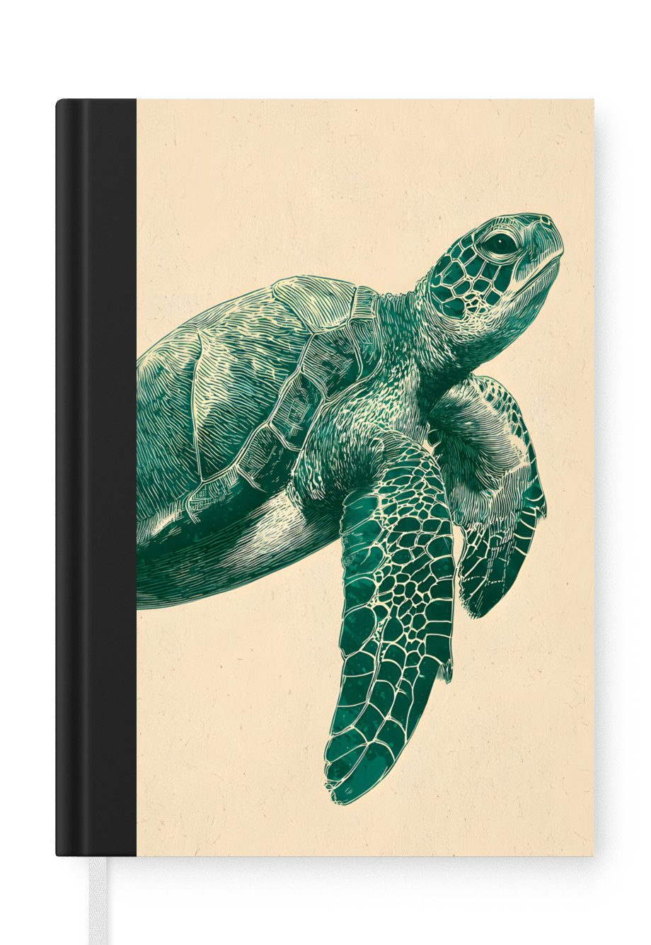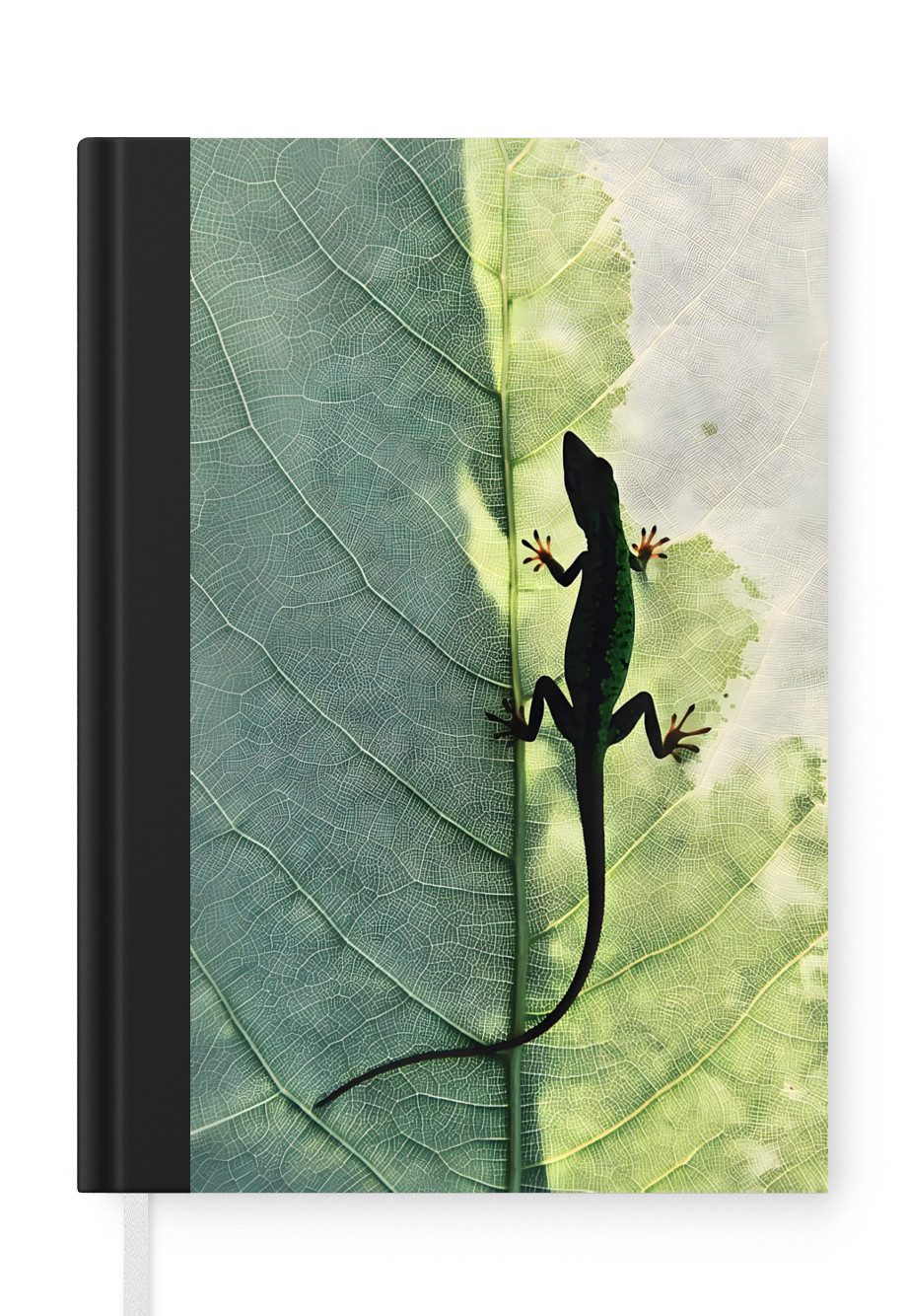 Das Notizbuch hat ein Hardcover und ist mit einer schwarzen Bindung versehen. Diese Bindung in Wildlederoptik verleiht ihm einen luxuriösen Look. Durch die schwarze Bindung hat das Notizbuch eine teilweise schwarze Rückseite. Dank seiner kompakten Размер lässt sich das Hardcover-Notizbuch leicht mitnehmen.
