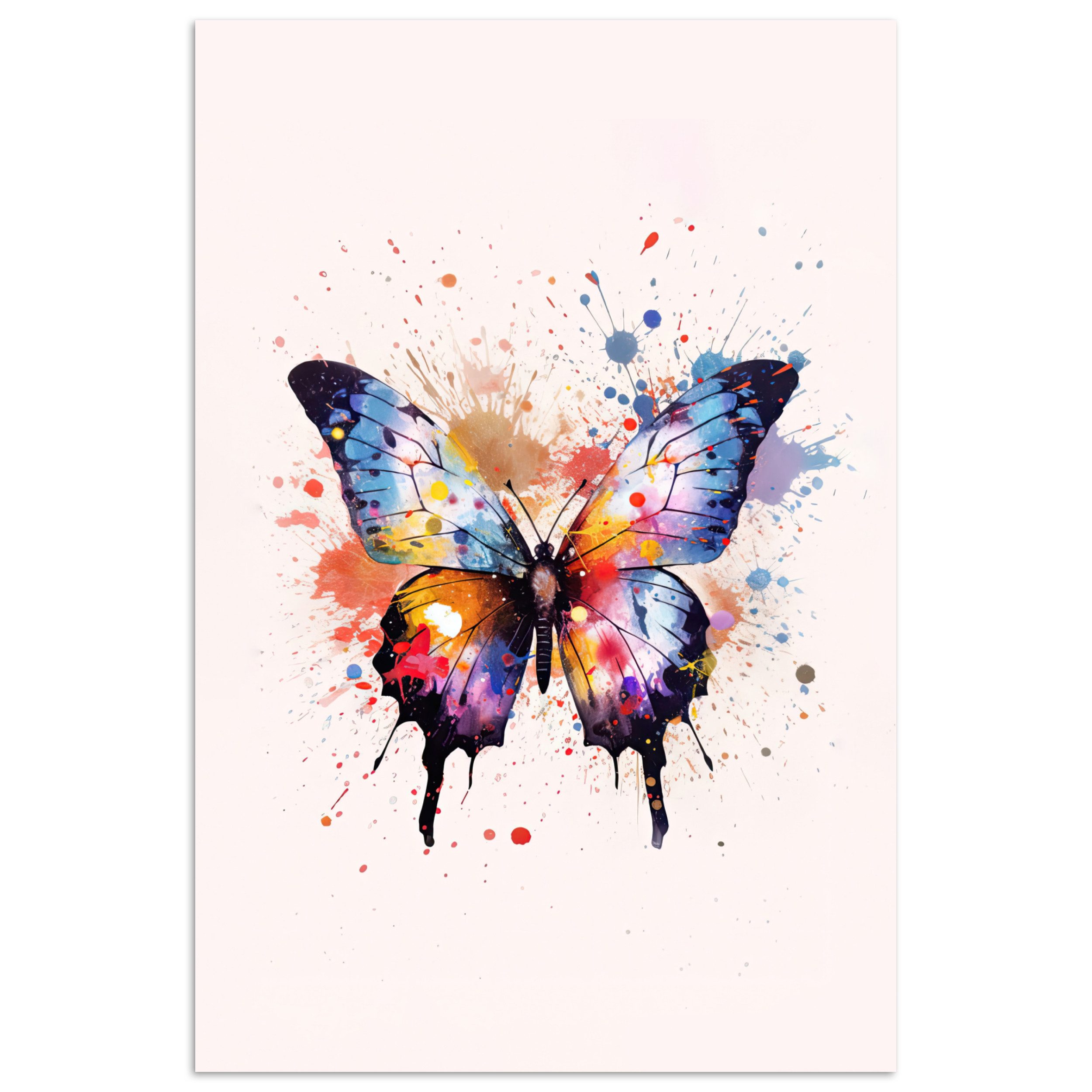 Ein Schmetterling auf einem rosa Hintergrund mit Farbspritzern.