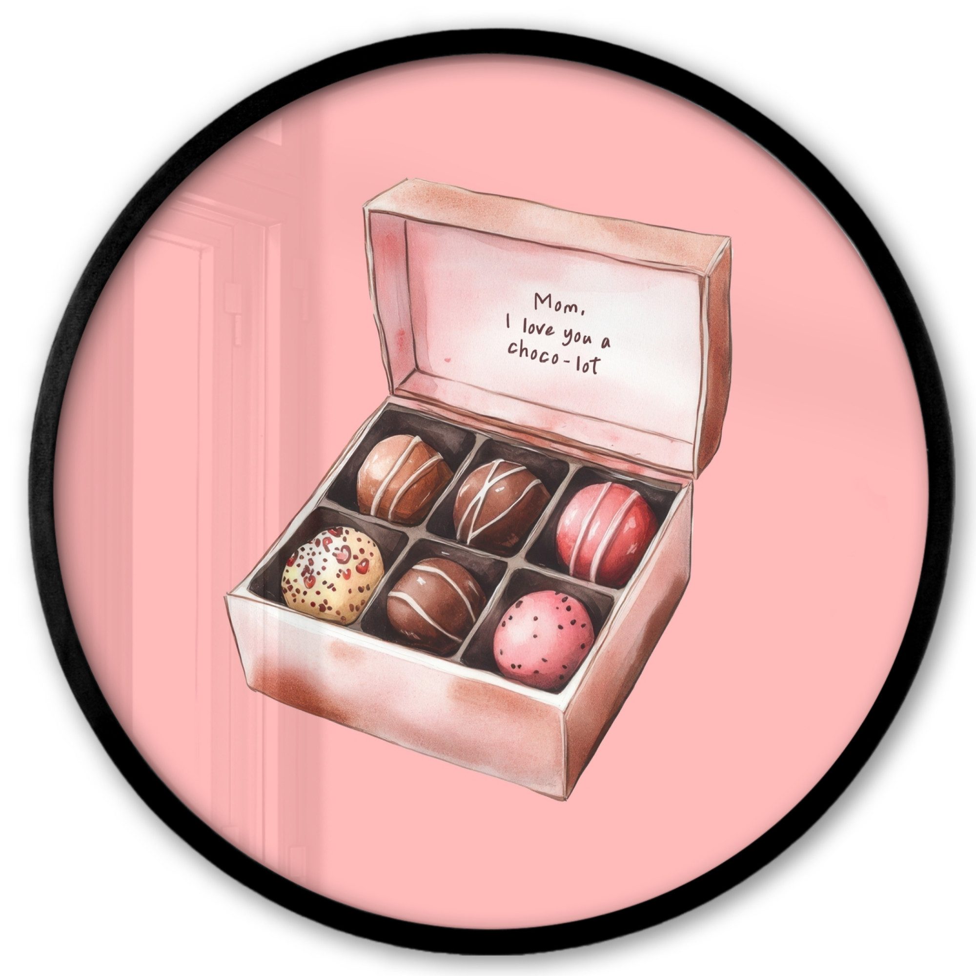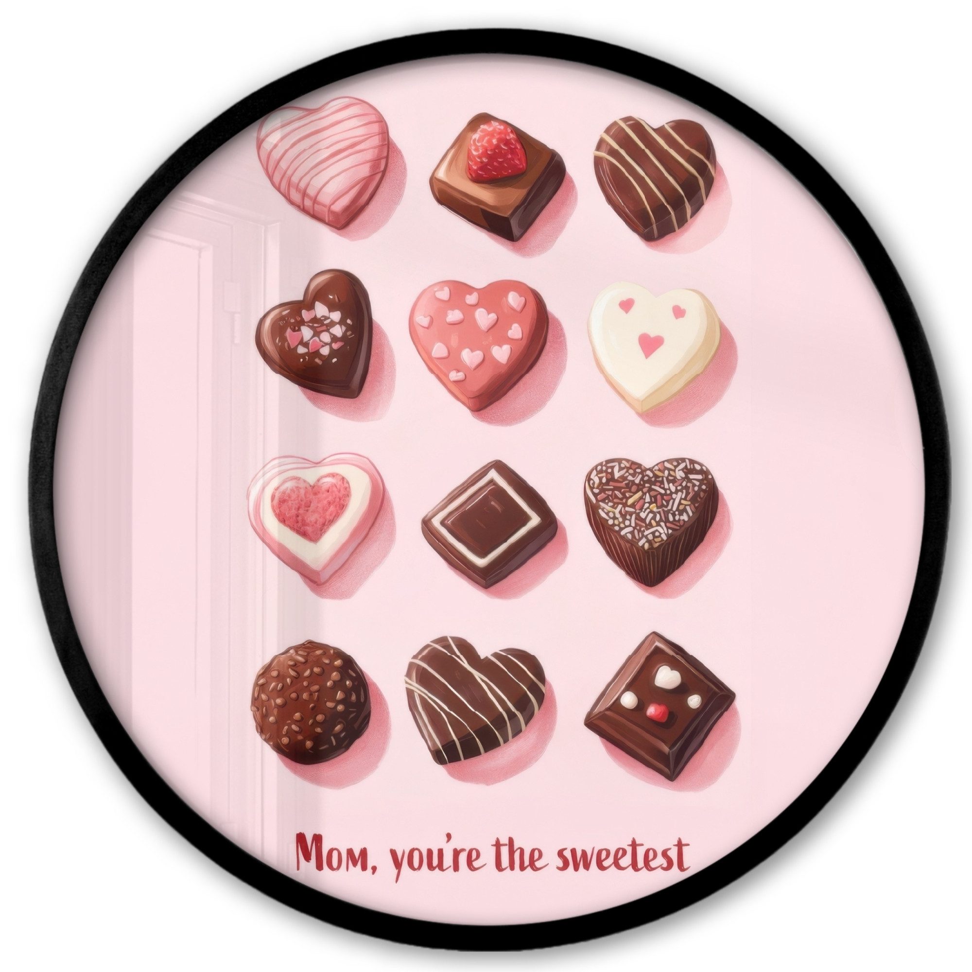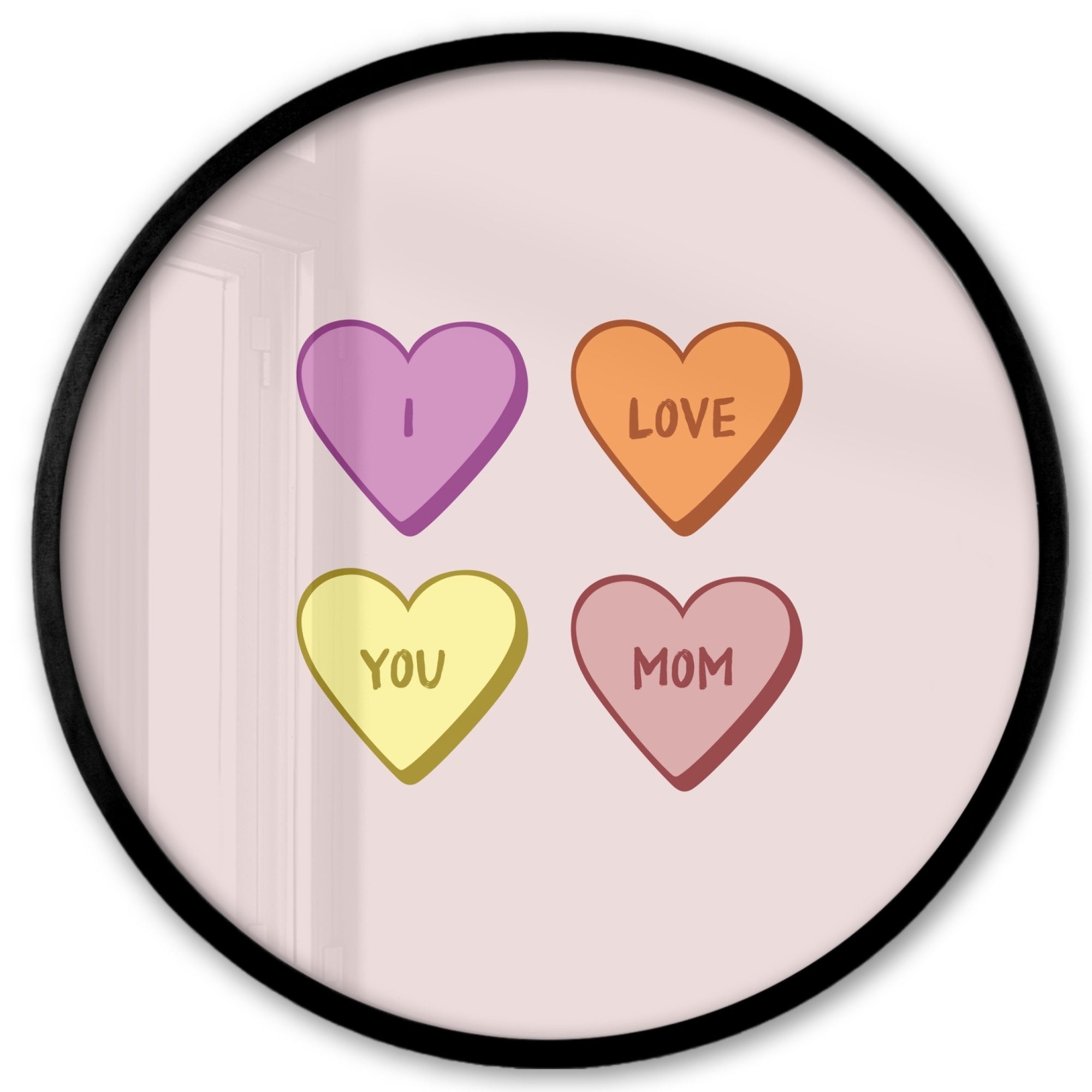 Goldene Trophäe mit dem Text "Best Mom", umgeben von bunten Blumen auf einem zartrosa Hintergrund.