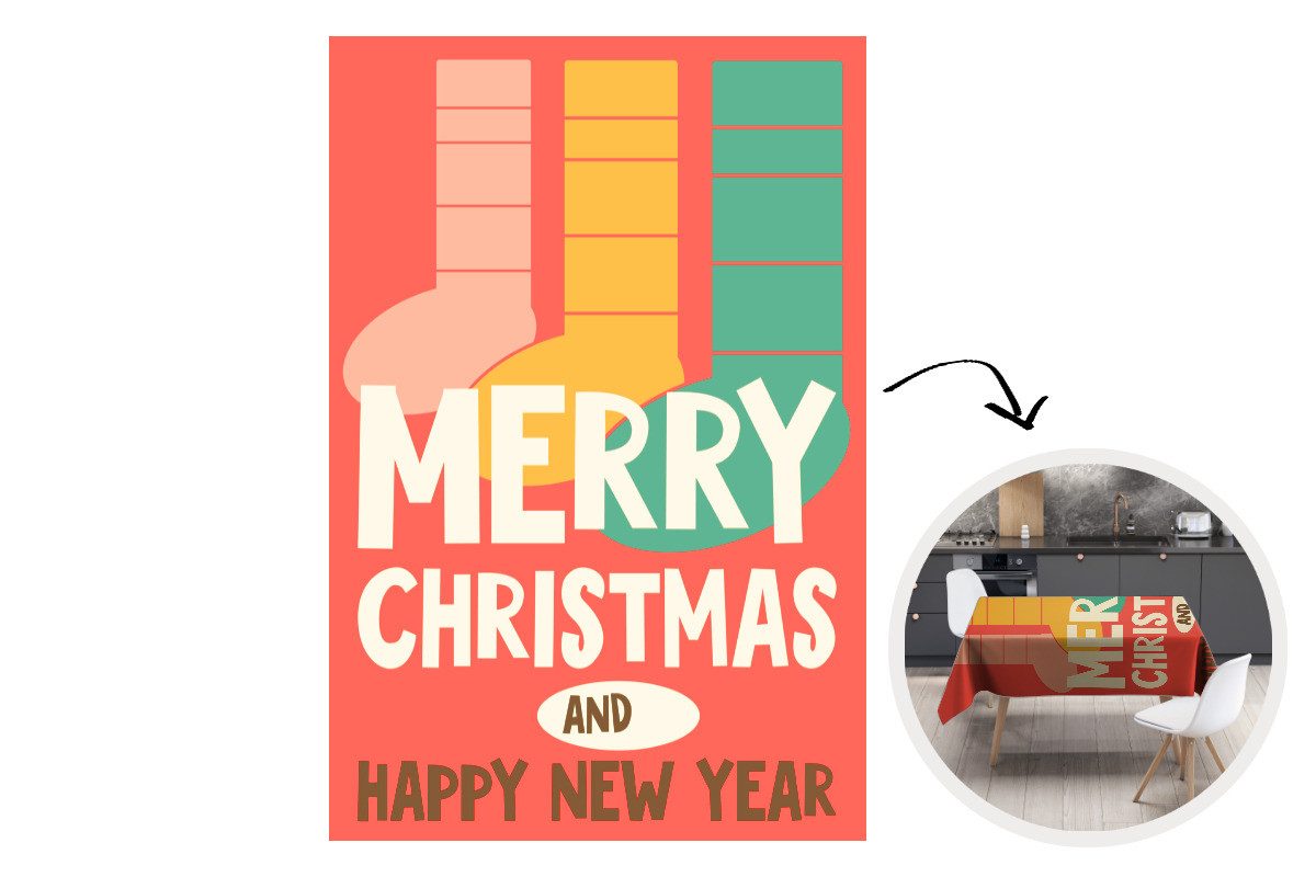 Weihnachtsillustration von Weihnachtssocken mit der Weihnachtsbotschaft "Frohe Weihnachten und ein gutes neues Jahr".