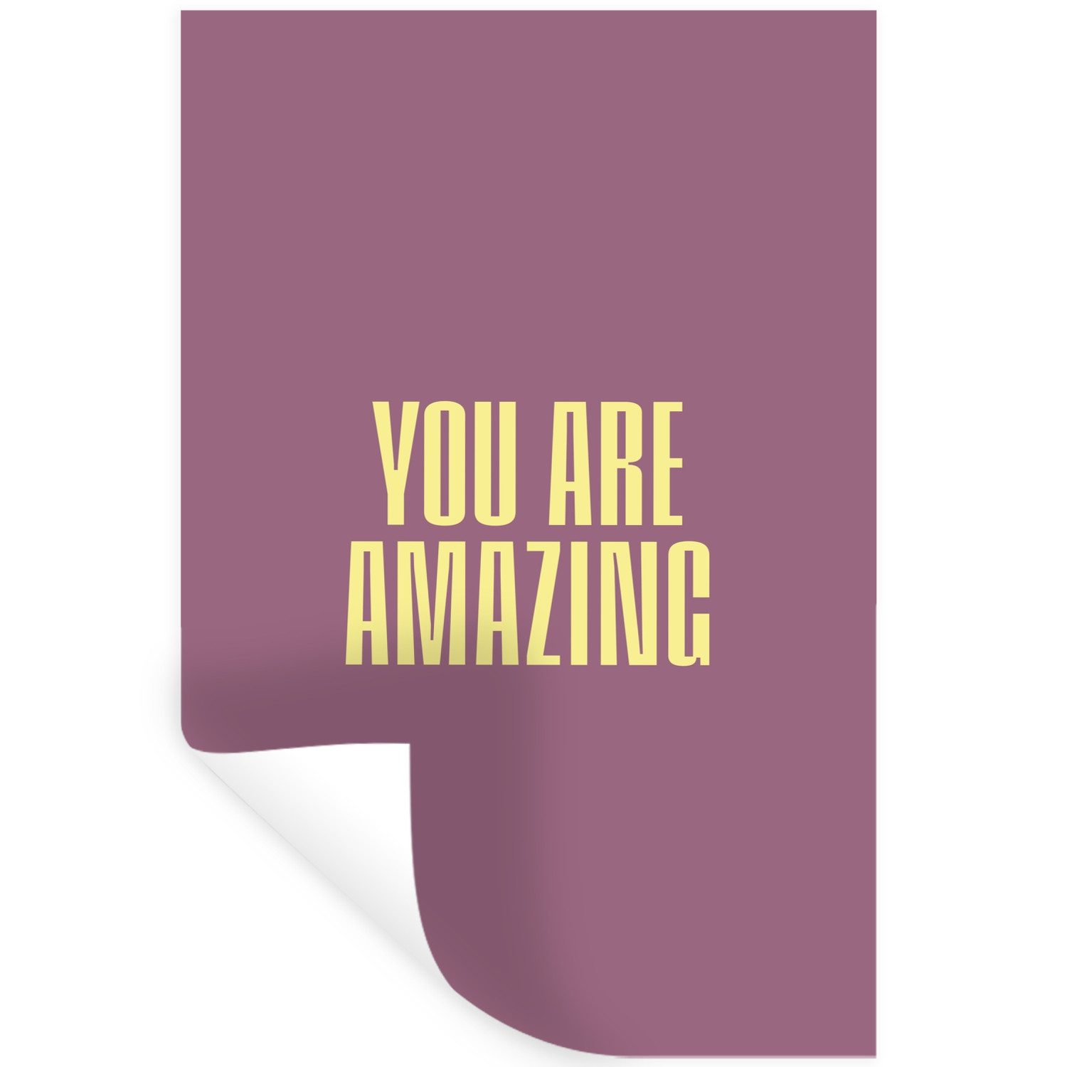 Gelbe Buchstaben mit der Aufschrift "YOU ARE AMAZING" auf lila Hintergrund in einem einfachen Design.