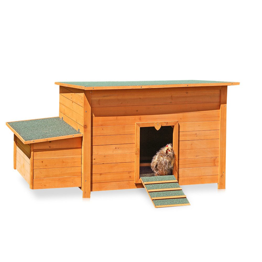 Der Mucola Hühnerstall "Hühnernest aus Holz Hühner Käfig Legenest Kleintier Stall Hühnerstall, Aufklappbares Dach" ist ein hochwertiger Hühnerstall aus Holz, der perfekt für die artgerechte Haltung Ihrer Hühner geeignet ist. Dieser robuste Kleintierstall besteht aus langlebigem Holzmaterial und bietet ausreichend Platz zum Herumlaufen. Der besondere Vorteil dieses Hühnerstalls liegt in seinem aufklappbaren Dach, das ein einfaches und bequemes Reinigen ermöglicht. Sie können den Stall problemlos säubern und die integrierte Kotwanne entfernen, um die Hygiene Ihrer Hühner zu gewährleisten. Mit dem gemütlichen Legenest können Ihre Hühner in aller Ruhe ihre Eier legen. Die Eiablage ist leicht zugänglich, sodass Sie die Eier ohne großen Aufwand entnehmen können. Eine kleine Erhöhung am Rand des Vogelhauses sorgt dafür, dass das Futter nicht herausfällt. Dadurch bleibt der Futterbereich sauber und Ihre Hühner können ihr Futter in aller Ruhe genießen. Der Hühnerstall bietet zudem ausreichend Schutz vor Räubern, da er mit einem stabilen Gitter ausgestattet ist. Ihre Hühner können sich frei im Freilaufbereich bewegen, während Sie sicher sein können, dass ihnen keine Gefahr droht. Der Stall verfügt über ein integriertes Belüftungssystem, das für eine optimale Luftzirkulation sorgt, und ist zudem ein isolierter Hühnerstall, der Ihre Tiere vor Kälte schützt. Die integrierten Nistplätze bieten zusätzlichen Komfort für Ihre Hühner. Das natürliche Design und die wetterfeste Bauweise des Hühnerstalls aus Holz fügen sich harmonisch in Ihren Außenbereich ein und bieten Ihren Hühnern ein sicheres und komfortables Zuhause. Zusammenfassend ist der Mucola Hühnerstall mit aufklappbarem Dach ein idealer Ort für Ihre Hühner. Mit seinem langlebigen Material, dem gemütlichen Legenest, den praktischen Nistplätzen und dem verlässlichen Schutz vor Raubtieren bietet er optimale Bedingungen für die tiergerechte Haltung Ihrer gefiederten Freunde. Perfekt für Hobbyhalter und kleine Bauernhöfe. Entdecken Sie jetzt den Mucola Hühnerstall und geben Sie Ihren Hühnern ein behagliches Zuhause!