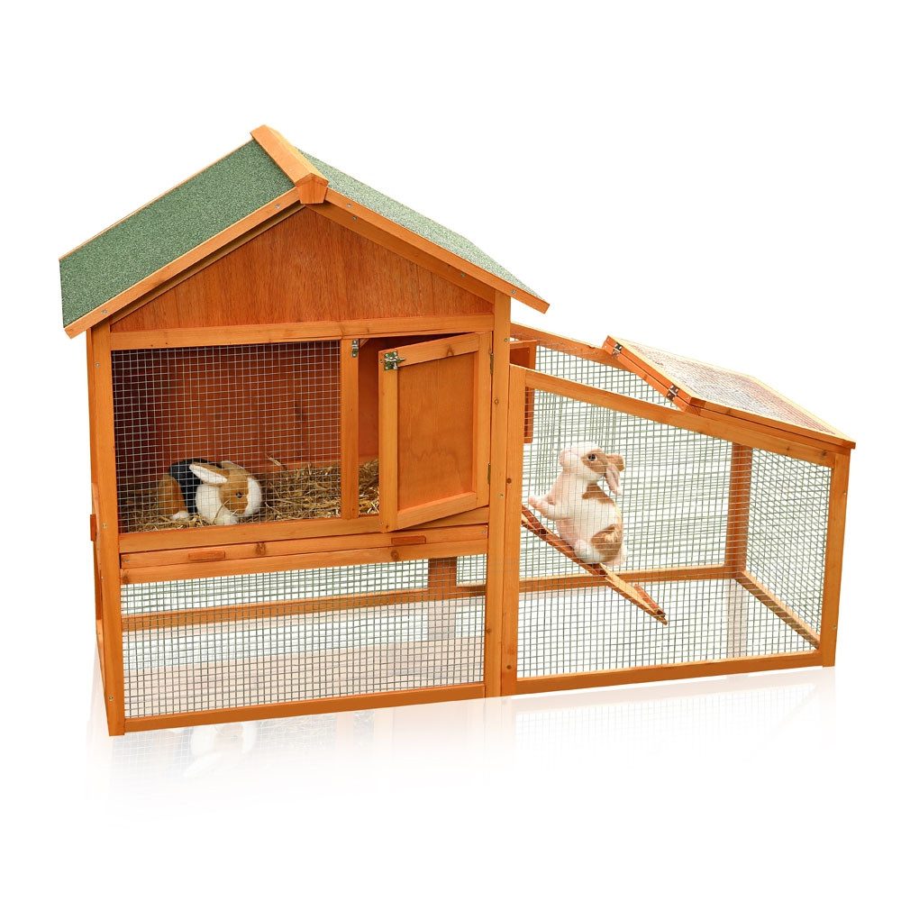 Die hochwertige Konstruktion des Kleintierstalls gewährleistet Stabilität und Haltbarkeit. Er ist mit langlebigen Gitterelementen ausgestattet, die für eine gute Luftzirkulation sorgen und gleichzeitig die Sicherheit Ihrer Tiere gewährleisten. Der Hasenkäfig verfügt über eine abnehmbare Rückwand, um Ihnen den Zugang und die Reinigung zu erleichtern.