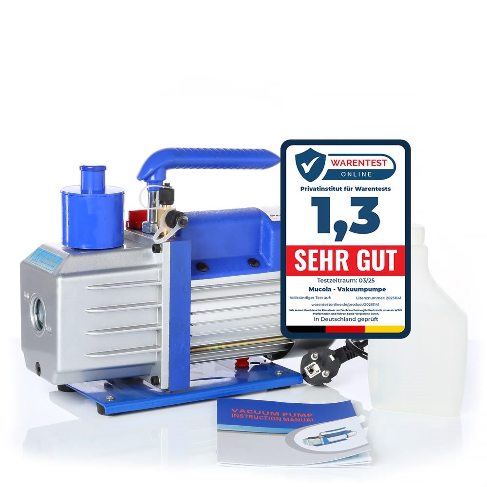 Unsere Mucola Klimamesser sind ein unverzichtbares Werkzeug für alle, die in der Klimatechnik, im Modellbau oder der Industrie arbeiten. Mit einer leistungsstarken Vakuumpumpe und einer Unterdruckpumpe von 127 l/Min sind sie besonders effektiv und einfach zu bedienen. Ein erzielbares Vakuum von 5 Pa (0,05 mbar) gewährleistet dabei optimale Ergebnisse. Die Öl-Kapazität von 250 ml und das Öl-Schauglas zur Kontrolle des Ölstands helfen dabei, den Betrieb stets effizient und zuverlässig zu halten. Dank ihres kompakten Designs und des robusten Handgriffs sind sie zudem besonders mobil und handlich. Ob für den professionellen Einsatz oder für den Hobbybereich – mit ihrer hochwertigen Verarbeitung und der leistungsstarken Ausstattung sind unsere Mucola Klimamesser die ideale Wahl und ein zuverlässiger Begleiter für jeden Einsatz.