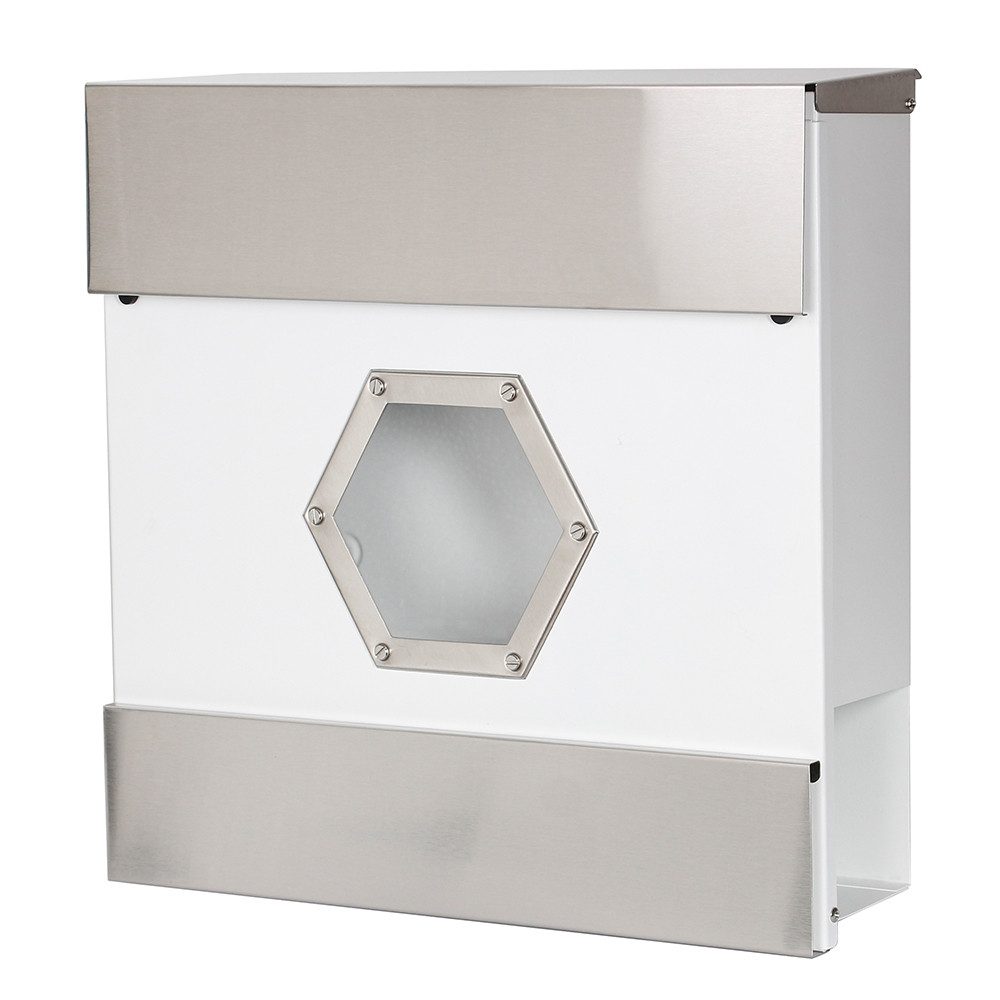 Lieferumfang | 1x Designer Briefkasten mit 2 Schlüsseln 1x Befestigungsmaterial für Wandmontage (Dübel, Schrauben, Distanz Gummis) |