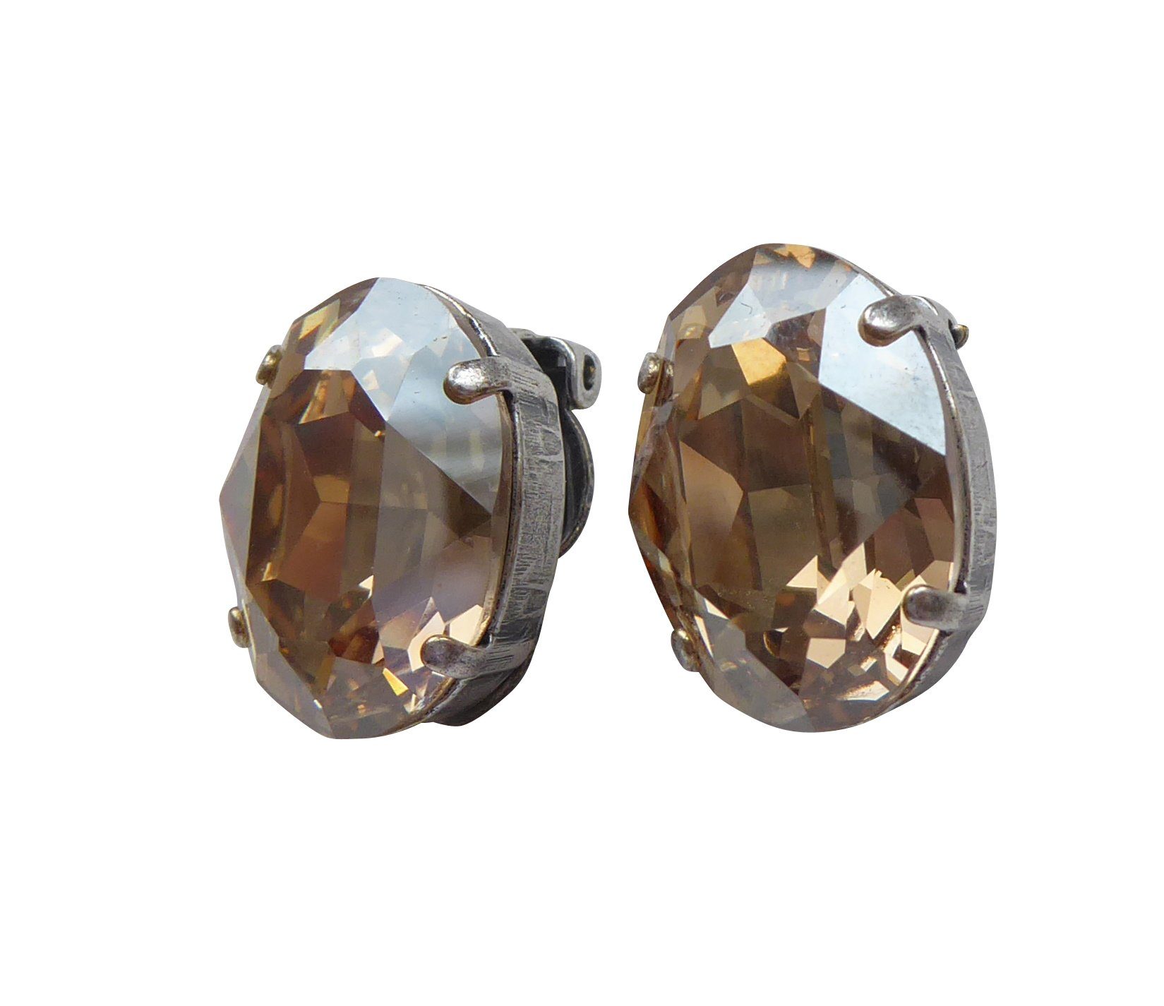 Die funkelnden Ohrclips haben einen facettierten ovalen Stein aus Kristallglas, der champagner-farben leuchtet. Die hübschen Clips werden in liebevoller Handarbeit in Deutschland gefertigt und sind sehr leicht und angenehm zu tragen. Das Material der Ohrringe besteht aus einer versilberten Metalllegierung und ist antiallergen und sehr gut verträglich. Ein Must-Have für Liebhaberinnen von klassischem Schmuck! Diese modischen und zeitlosen Clips liegen absolut im Trend. Die hochwertig gearbeiteten Ohrringe werten jeden Look auf und sind wegen ihrer Размер besonders im Alltag gut einsetzbar – egal ob im Büro oder in der Freizeit zum sportlichen Casual-Look. Aber wegen ihres Glanzes und Funkelns sind sie auch wunderbar für einen festlichen Anlass wie zum Beispiel ein Fest, eine Hochzeit, ein Ball zum eleganten Abendkleid oder auch eine legere Party einsetzbar. Diese schicken, stilvollen Basic-Ohrringe sind auch ein trendiges Geschenk zum Geburtstag, Weihnachten, Konfirmation oder Valentinstag für Frauen und Mädchen. Ein klassisches, edles und modernes Fashion-Accessoire und ein schöner Allrounder für Frühling, Sommer, Herbst und Winter! Maße der Clips: Höhe: 2,0 cm, Breite: 1,4 cm.