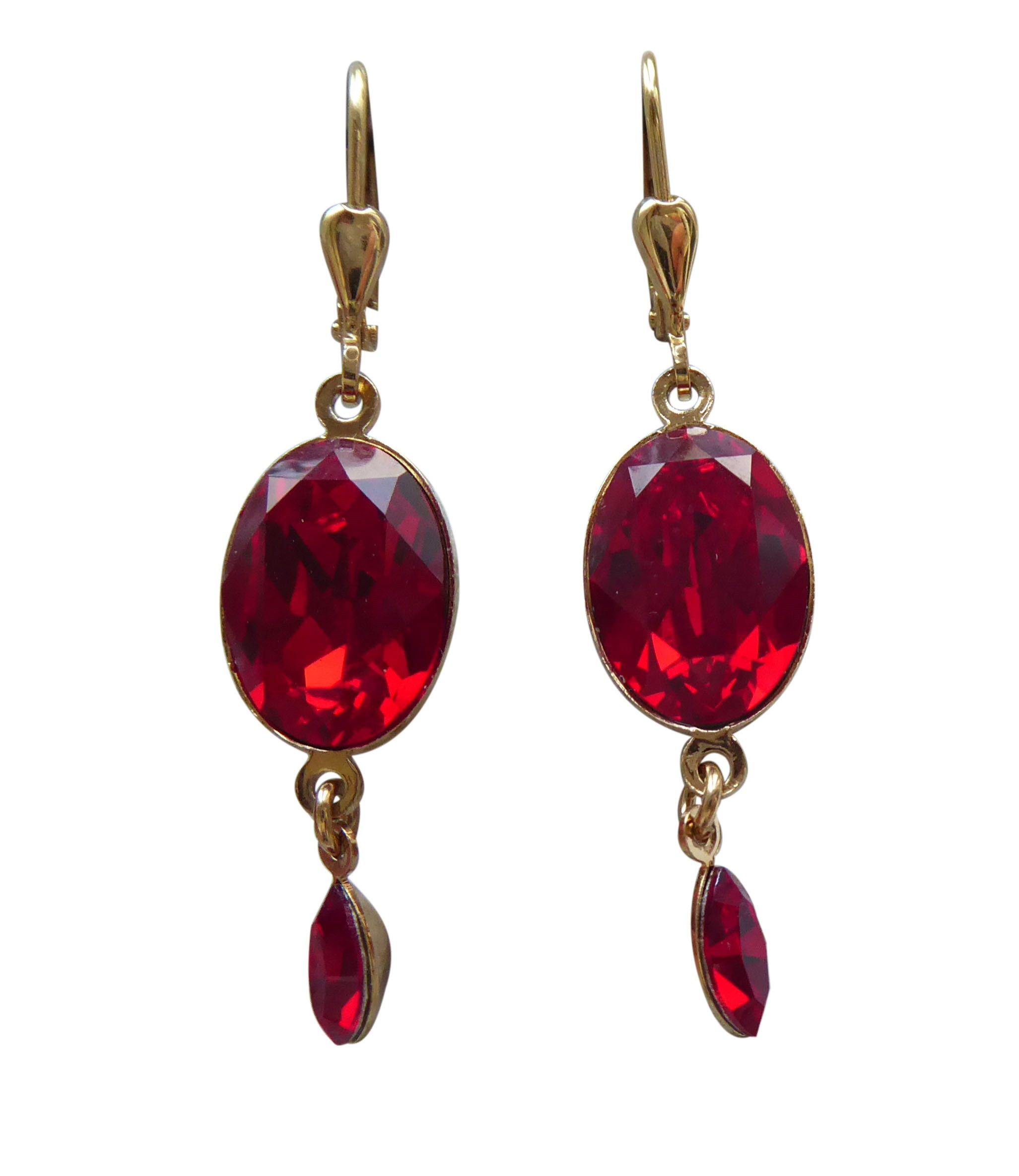 Die funkelnden Ohrringe haben einen facettierten ovalen Stein aus Kristallglas, der in einem schönen Rot leuchtet, mit einem kleinen, rosa schillernden Anhänger. Die hübschen Ohrringe werden in liebevoller Handarbeit in Deutschland gefertigt und sind sehr leicht und angenehm zu tragen. Sie haben einen verschließbaren Brisur-Verschluss (Klappbügel), der ein Verlieren der Ohrringe verhindert. Die Bügel bestehen aus einer Metallegierung mit einer Gelbvergoldung und sind antiallergen und sehr gut verträglich. Ein Must-Have für Liebhaberinnen von glitzerndem Schmuck! Diese modischen und zeitlosen Ohrhänger liegen absolut im Trend. Die hochwertig gearbeiteten Ohrringe werten jeden Look auf und sind wegen ihrer Размер besonders im Alltag gut einsetzbar – egal ob im Büro oder in der Freizeit zum sportlichen Casual-Look. Aber wegen ihres Glanzes und Funkelns sind sie auch wunderbar für einen festlichen Anlass wie zum Beispiel ein Fest, eine Hochzeit, ein Ball zum eleganten Abendkleid oder auch eine legere Party einsetzbar. Diese schicken, stilvollen Basic-Ohrringe sind auch ein trendiges Geschenk zum Geburtstag, Weihnachten, Konfirmation oder Valentinstag für Frauen und Mädchen. Ein klassisches, edles und modernes Fashion-Accessoire und ein schöner Allrounder für Frühling, Sommer, Herbst und Winter! Maße der Ohrringe: Höhe (ohne Bügel): 3,1 cm, Breite: 1,0 cm.