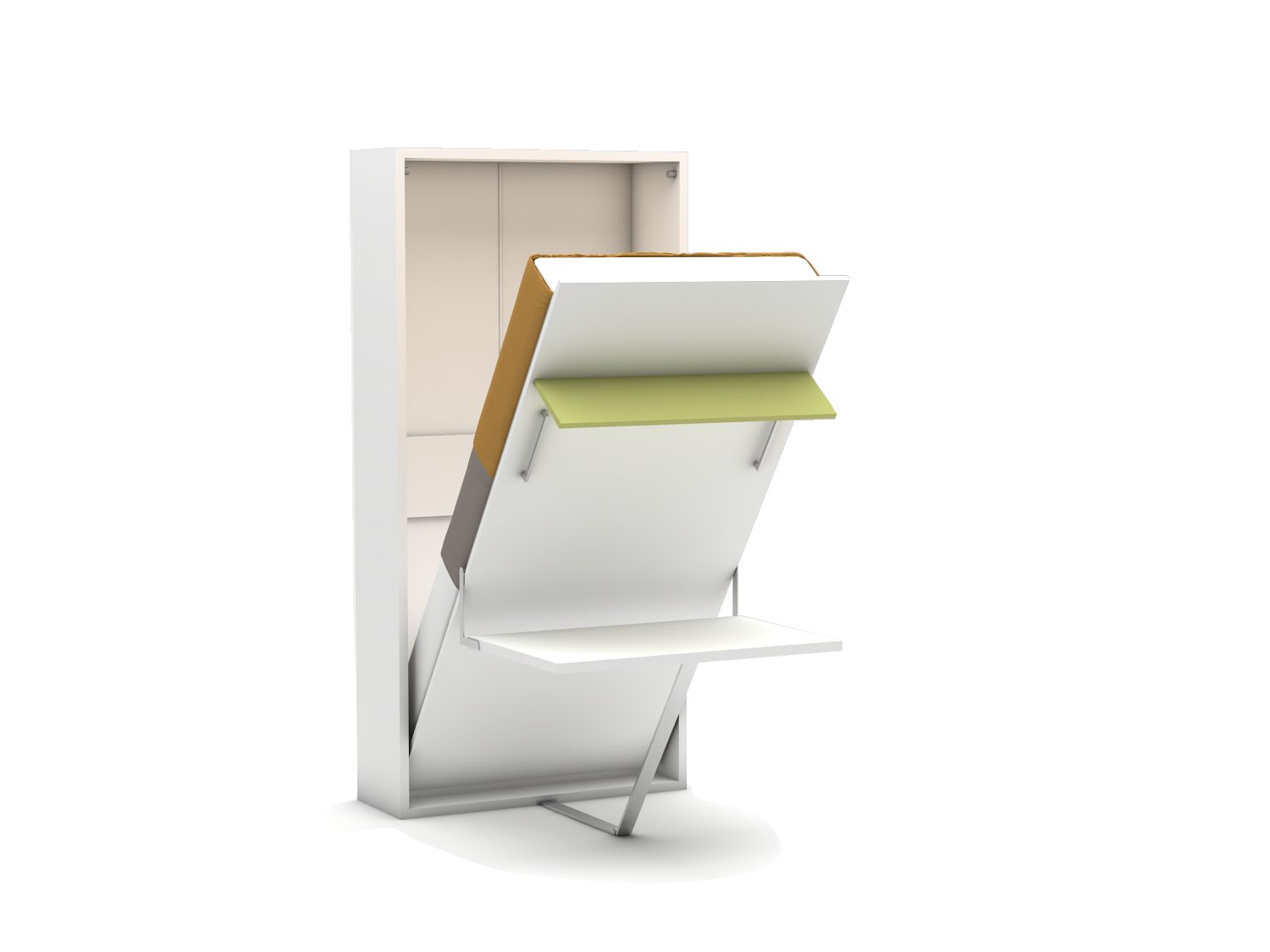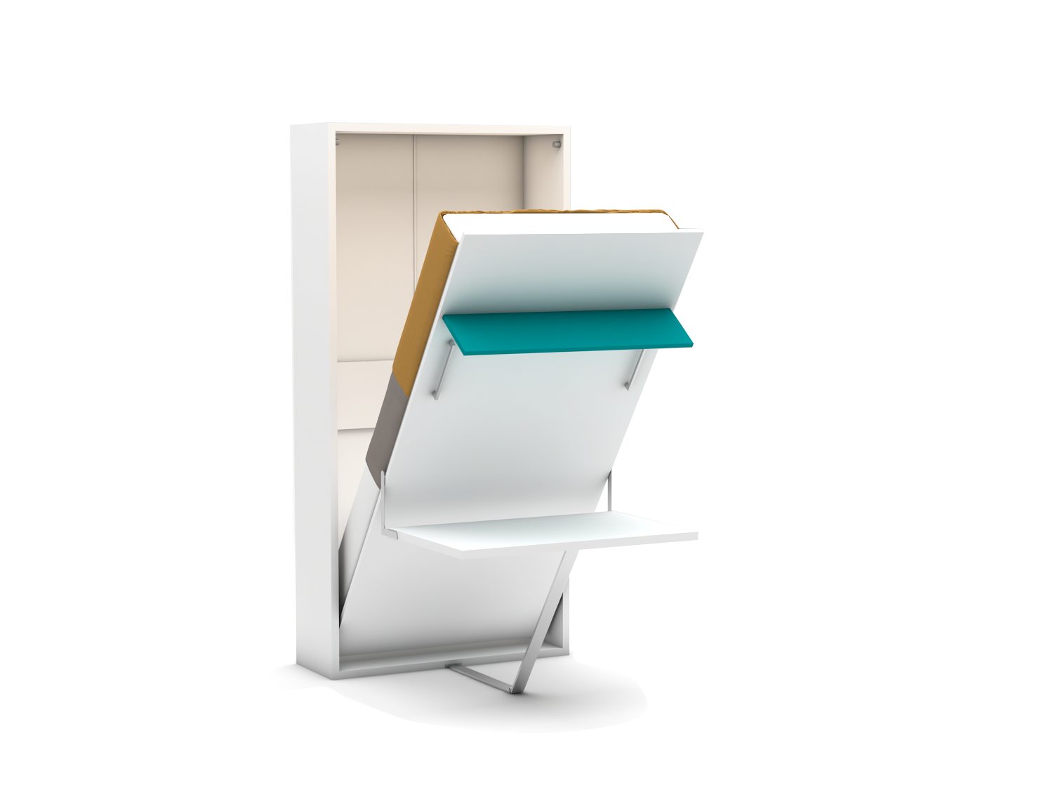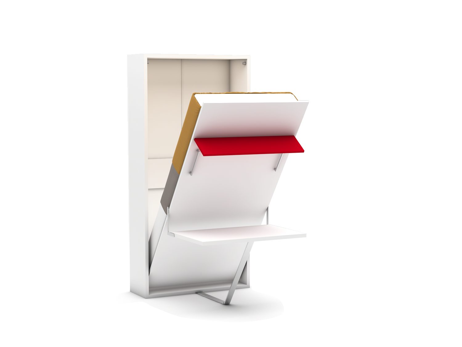 Klappbett HAPPY TABLE ist eines unserer beliebtesten Modelle. Zwei Möbelstücke - das Bett und der Schreibtisch nehmen nur ein qm Platz. Dank seines speziellen Mechanismus bleiben die Gegenstände auf dem Tisch während das Bett aufgeklappt wird. Mit seinem vielseitigen platzsparenden Design bietet dieses Schrankbett alles, was Sie für ein einfaches und komfortables Leben benötigen.