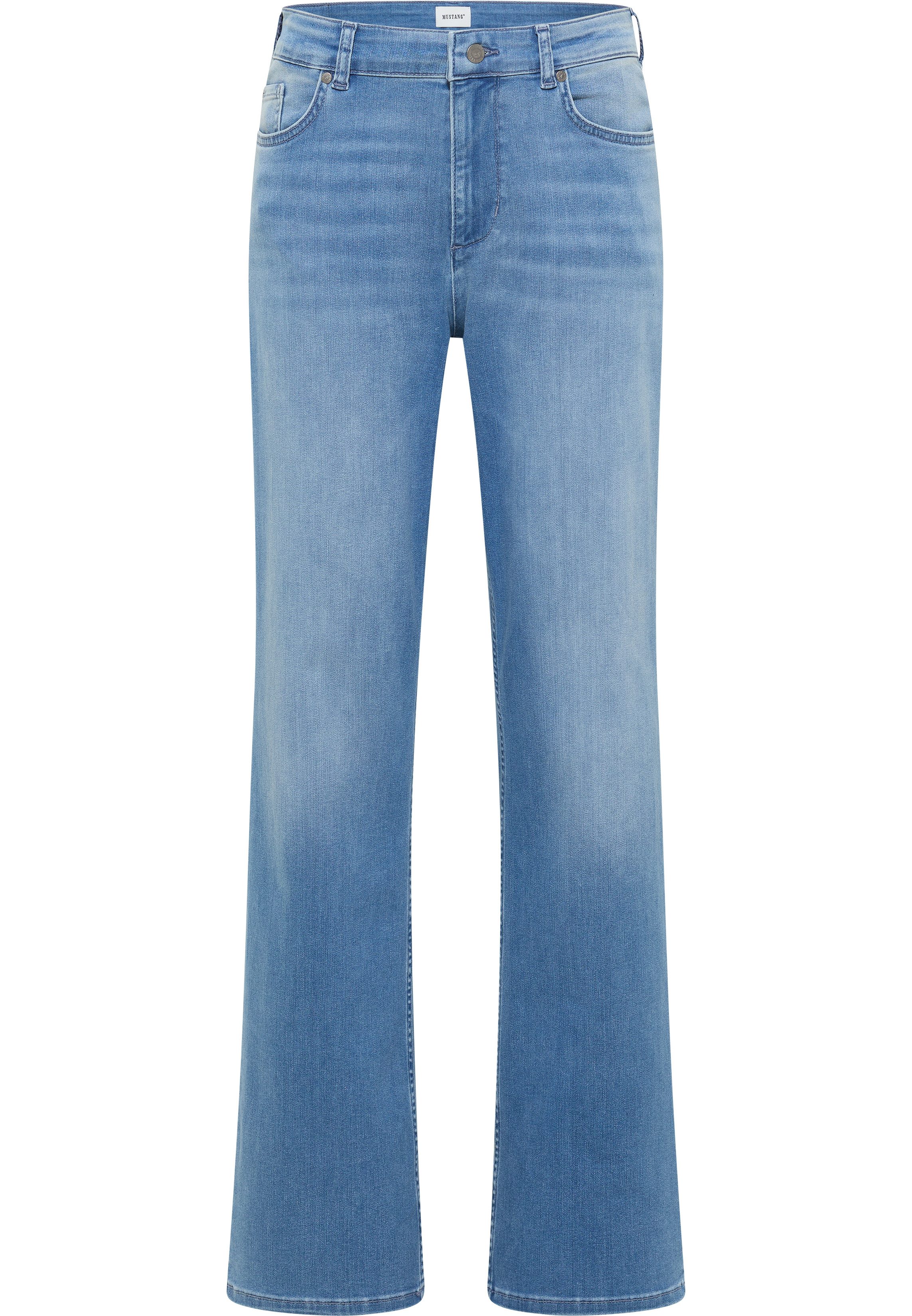 In deiner Freizeit machst du mit der weiten Jeans »Madison Wide« von MUSTANG eine besonders gute Figur: Gib dem Look eine feminine Note, indem du die Jeans mit einem schulterfreien oder fließendem Oberteil kombinierst. Komplett wird der gekonnte Stilmix mit Pumps.