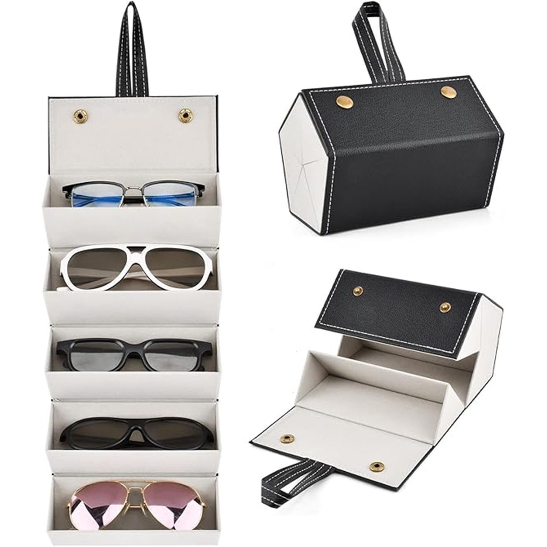 sonnenbrillen aufbewahrungsbox für 5 brillen, reisen kunstleder brillenorganizer präsentation, kann suspendiert werden tragbar brillenetui für brillen damen herren