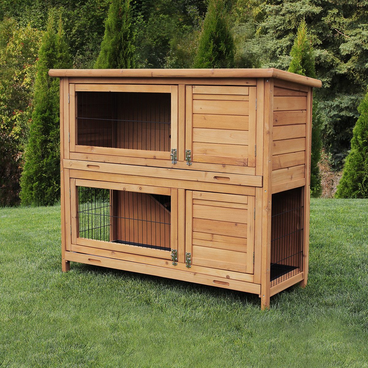 Ausstattung | Rampe, Dachpappe, verschließbare Türklappen, aufklapbares Dach mit Arretierung, Zwei trennbare Etagen, 4 Sichtgitter, 2 ausziehbare Kunststoff Schubladen |