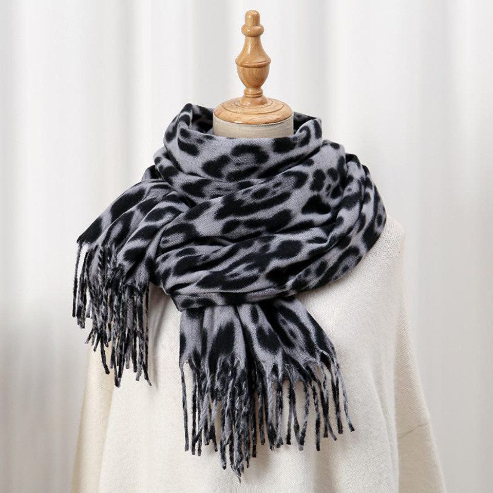 Oversized Damen Herbst/Winter Schal Übergroßer Schal Winterschal beidseitig tragbar mit Leomuster Halstuch mit Animalprint XXL Damen Schal