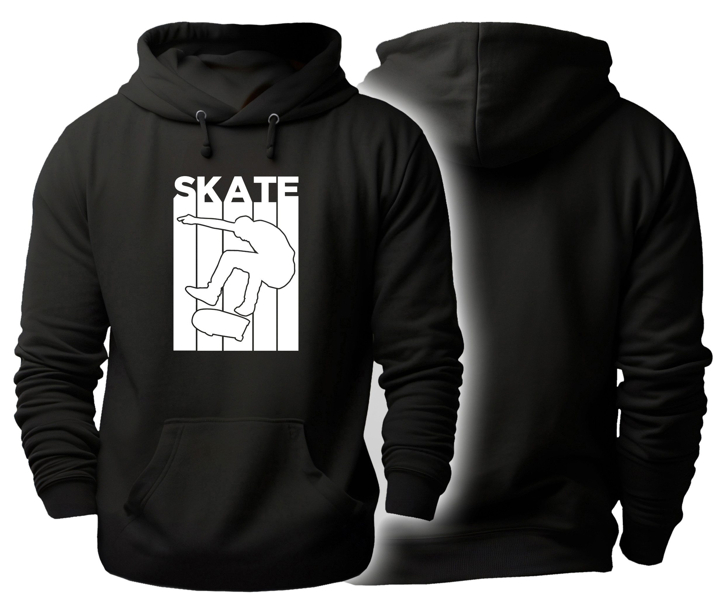 Mit diesem Skater Hoodie bringst du echten Streetstyle in deinen Alltag – lässig, bequem und immer ein bisschen rebellisch. Der markante Brustprint zeigt einen Skater in Action vor dem fetten Schriftzug „SKATE“ und macht den Kapuzenpullover zu einem echten Blickfang für alle, die Sportlichkeit und Urban Style lieben. Ob beim Chillen mit Freunden, in der City oder nach einer ausgedehnten Skate-Session – dieser Kapuzenpulli ist dein treuer Begleiter. Dank der Baumwoll Polyester Mischung trägt sich der Sweater angenehm weich, ist atmungsaktiv und bleibt dabei trotzdem robust genug für jede Bewegung. Die Kapuze schützt dich vor Wind und Wetter, während die große Kängurutasche praktisch Platz für Handy, Snacks oder einfach deine Hände bietet, wenn es draußen mal frischer wird. Genau das Richtige, wenn du etwas wärmend und stylisches suchst, das nicht nur nach Sport aussieht, sondern ihn auch aushält. Dieser Kapuzensweater ist nicht nur funktional, sondern auch eine richtig gute Geschenkidee – egal ob als cooles Geburtstagsgeschenk für Skater, als Überraschung zu Weihnachten oder einfach so, um jemanden glücklich zu machen. Denn ein Hoodie Herren oder Hoodie Damen wie dieser geht wirklich immer. Zum Überziehen nach dem Training, lässig zur Jeans oder sportlich zur Jogger – mit diesem Skater Hoodie setzt du ein klares Statement