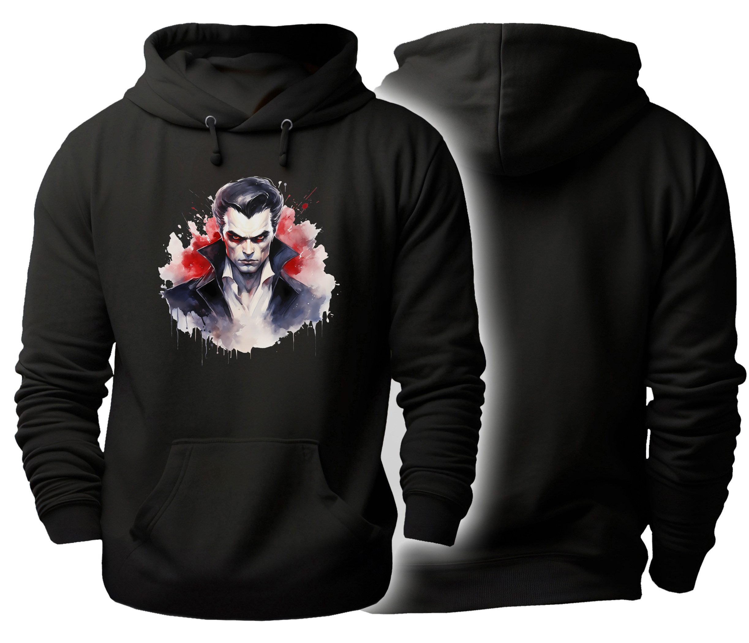 Markantes Vampir-Aquarell-Motiv mit dramatischen Rot- und Grautönen verleiht dem Hoodie einen einzigartigen Gothic-Look, perfekt für Halloween, Horror und lässige Streetwear.