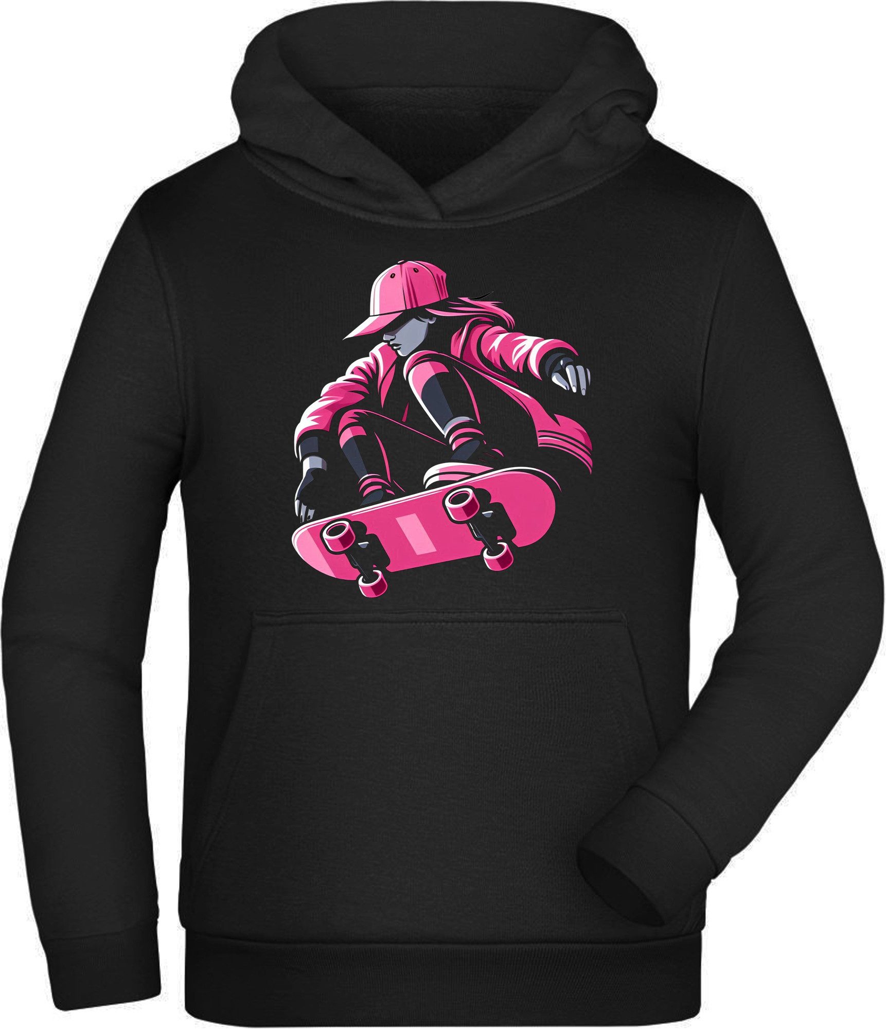 Stylischer Kinder Hoodie mit auffälligem Skater-Girl Print – ideal für coole Kids, die sportlich aktiv sind und einen trendigen Streetstyle lieben.