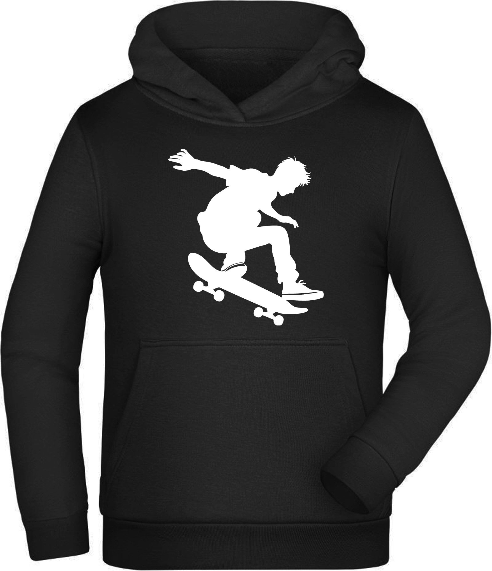 Lässiger Kinder Hoodie mit dynamischem Skater-Motiv als Brustprint – perfekt für coole Kids, die Action lieben und ihren sportlichen Style zeigen möchten.