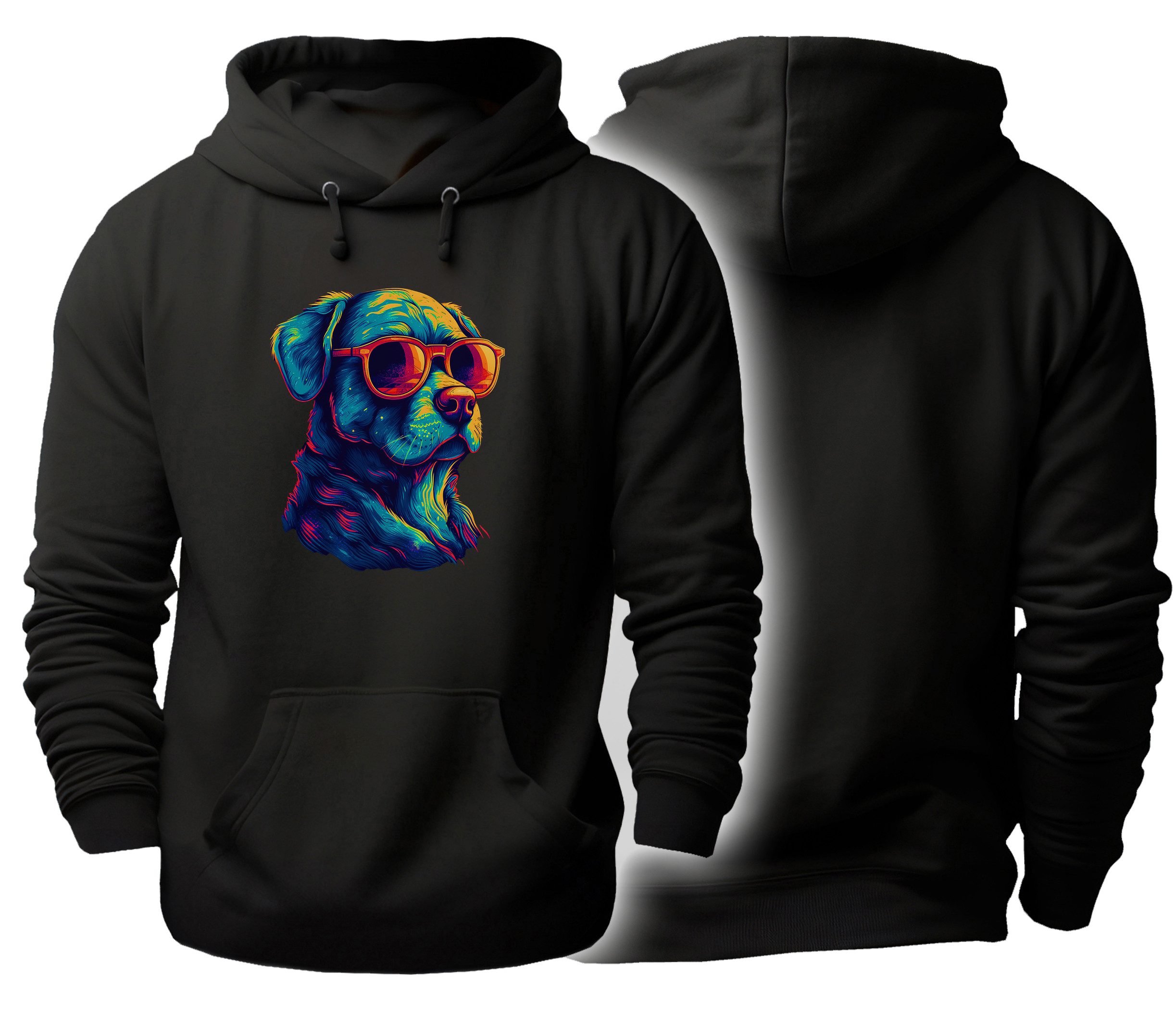 Stylischer Hoodie im Streetart-Look mit farbenfrohem Hundemotiv – ein Kapuzenpullover, der als Herren Hoodie oder Damen Hoodie gleichermaßen begeistert und ein Statement setzt.