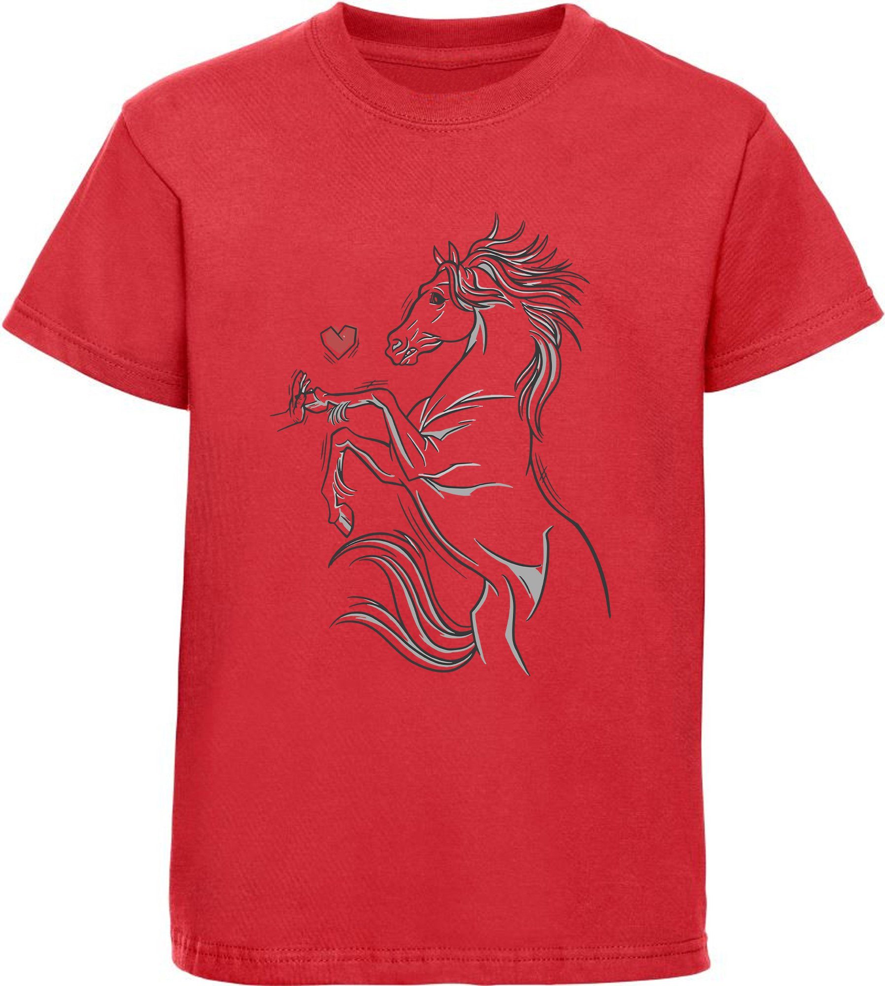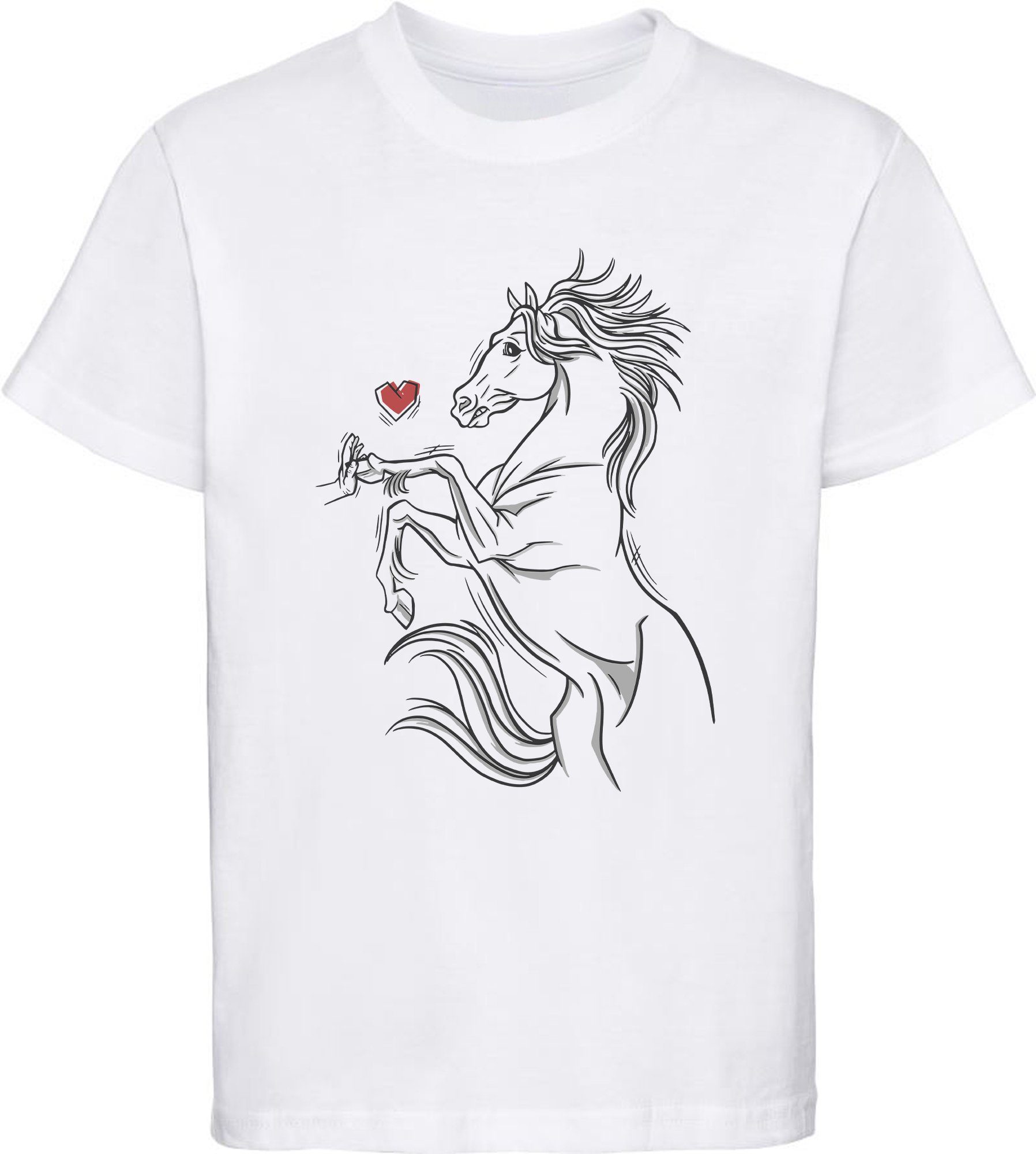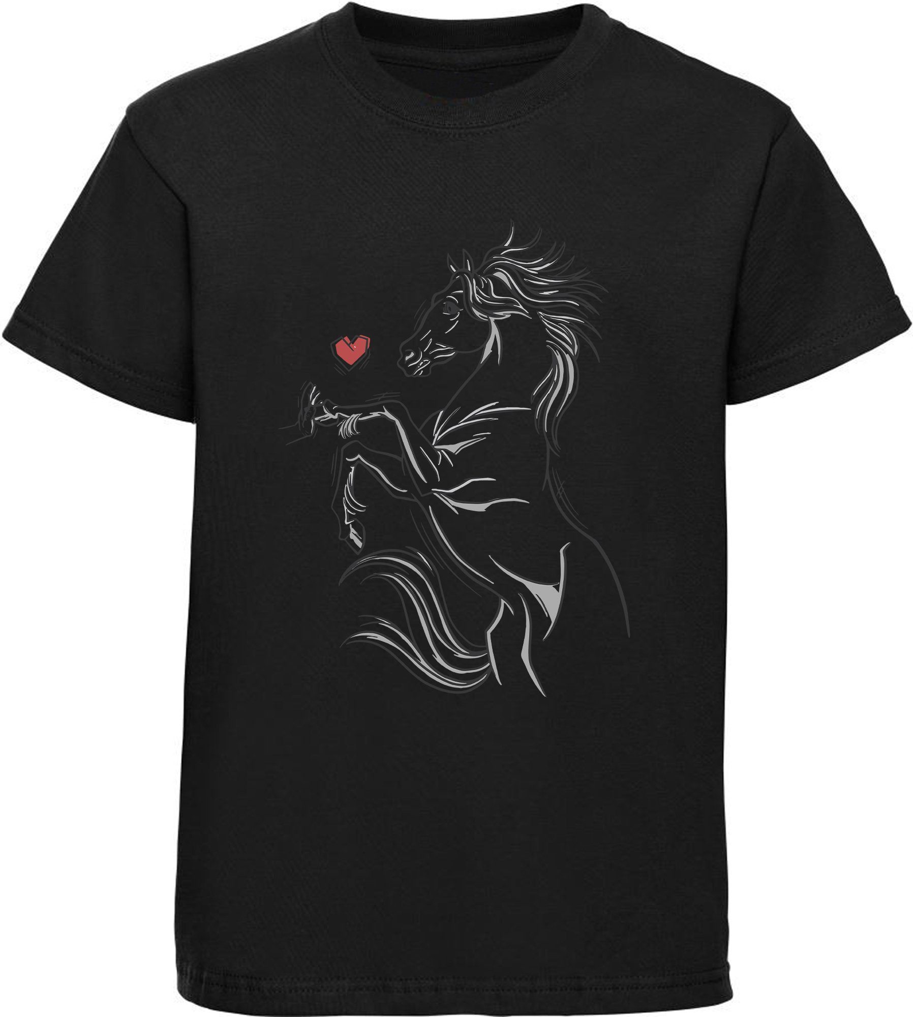 Das springende Pferd mit flatternder Mähne und rotem Herz bringt Power und Gefühl auf die Brust – ein echter Hingucker für Kids mit Abenteuerlust.