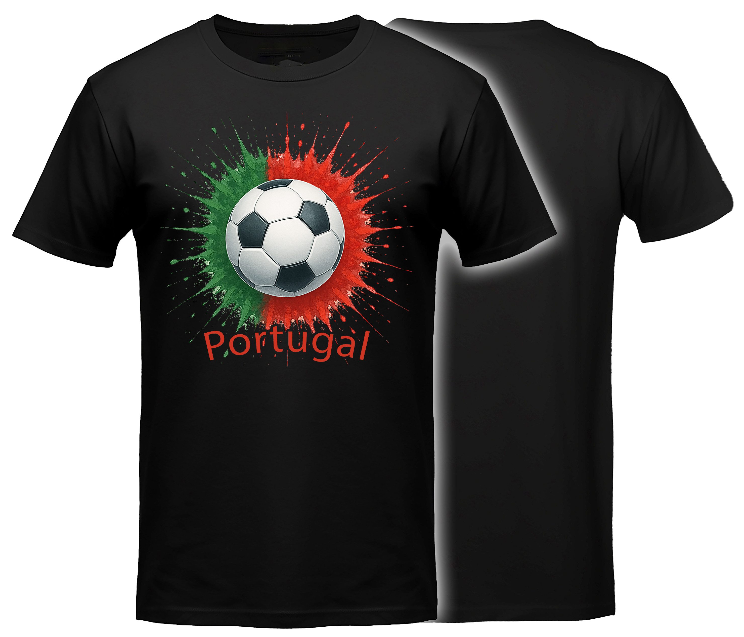 Ausdrucksstarkes Premium T-Shirt mit kreativem Fußballmotiv vor landestypischem Farbklecks – ideal für Fans, die ihren Teamstolz modisch zeigen möchten.