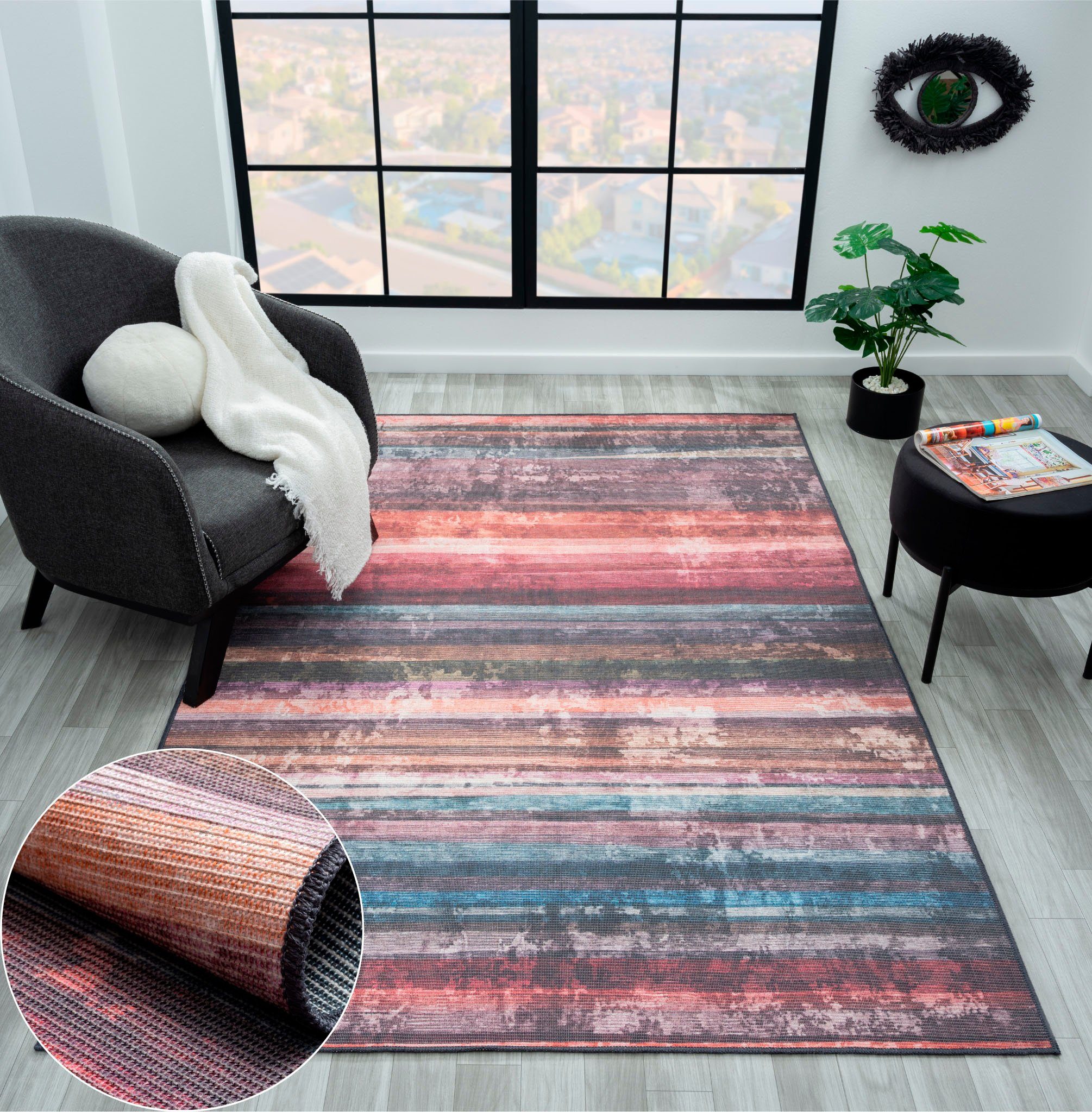 Maschinell gewebter Teppich | Beim Auslegen des Teppichs kann durch das Aufrollen der Teppich etwas wellig erscheinen, dieses legt sich nach kurzer Zeit aus. Sie können dieses etwas beschleunigen wenn Sie den Artikel in gegenläufiger Richtung nochmals aufwickeln. |