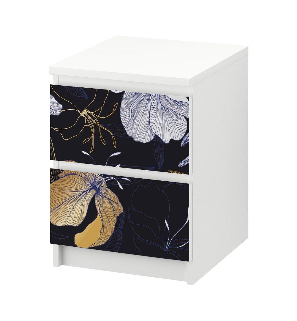 Gib deiner Kommode neuen Glanz mit dem Kommodenaufkleber Malm abstrakte Blumen Blätter gold blau