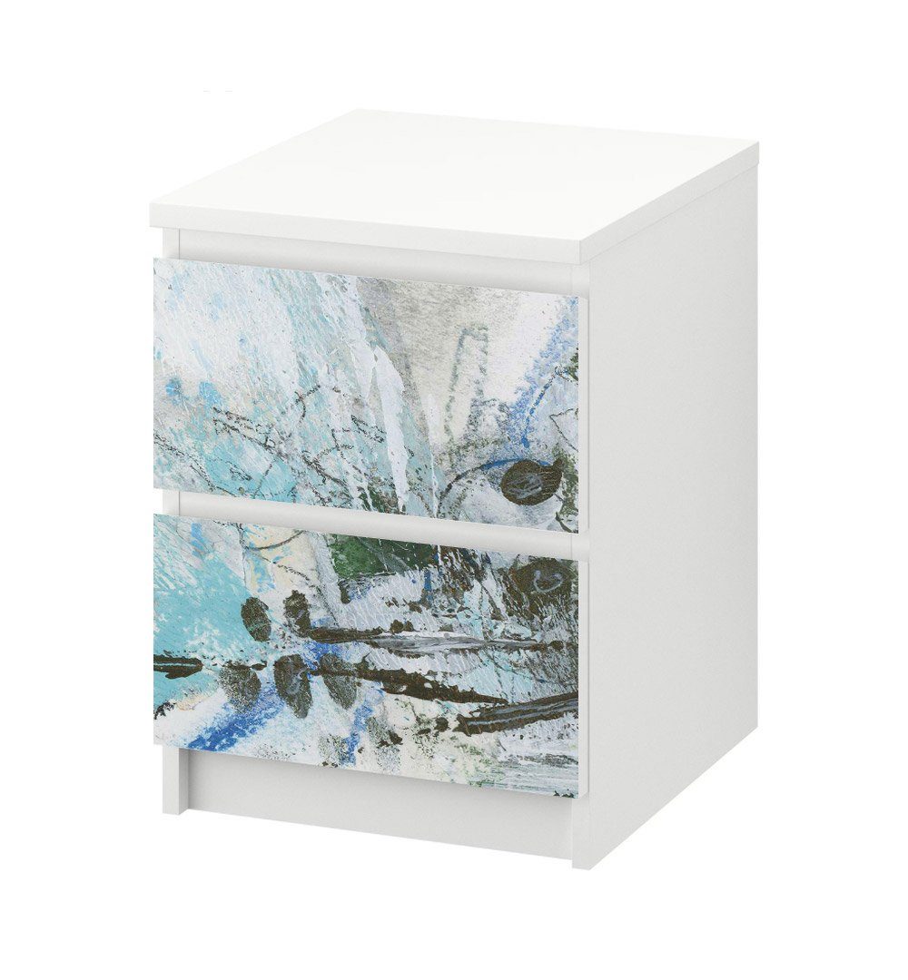 Gib deiner Kommode neuen Glanz mit dem Kommodenaufkleber Malm Pinselstriche blau