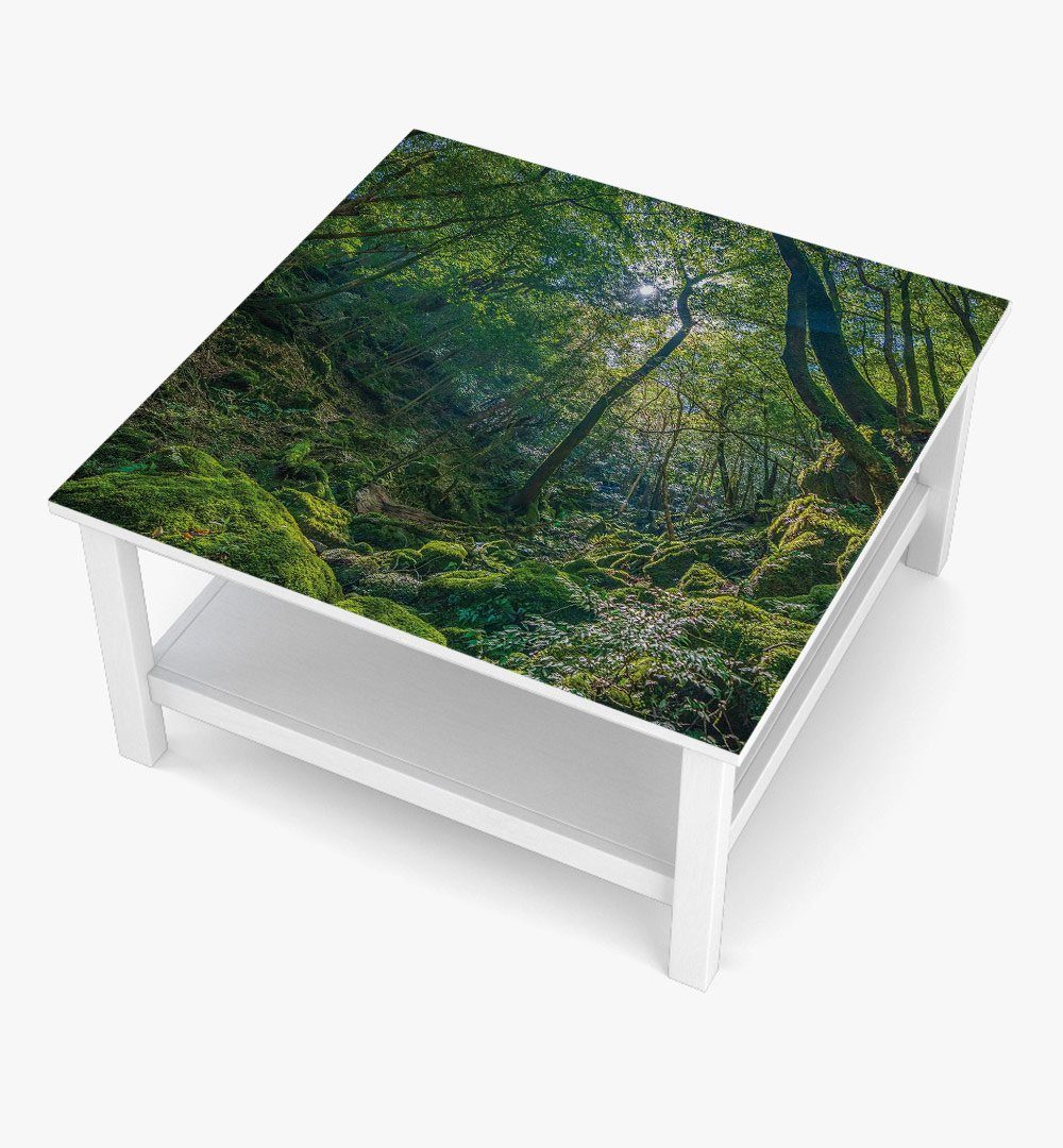 Tischfolie Felsiger Wald Bubblefree selbstklebend ist kompatibel mit IKEA Lacktisch.