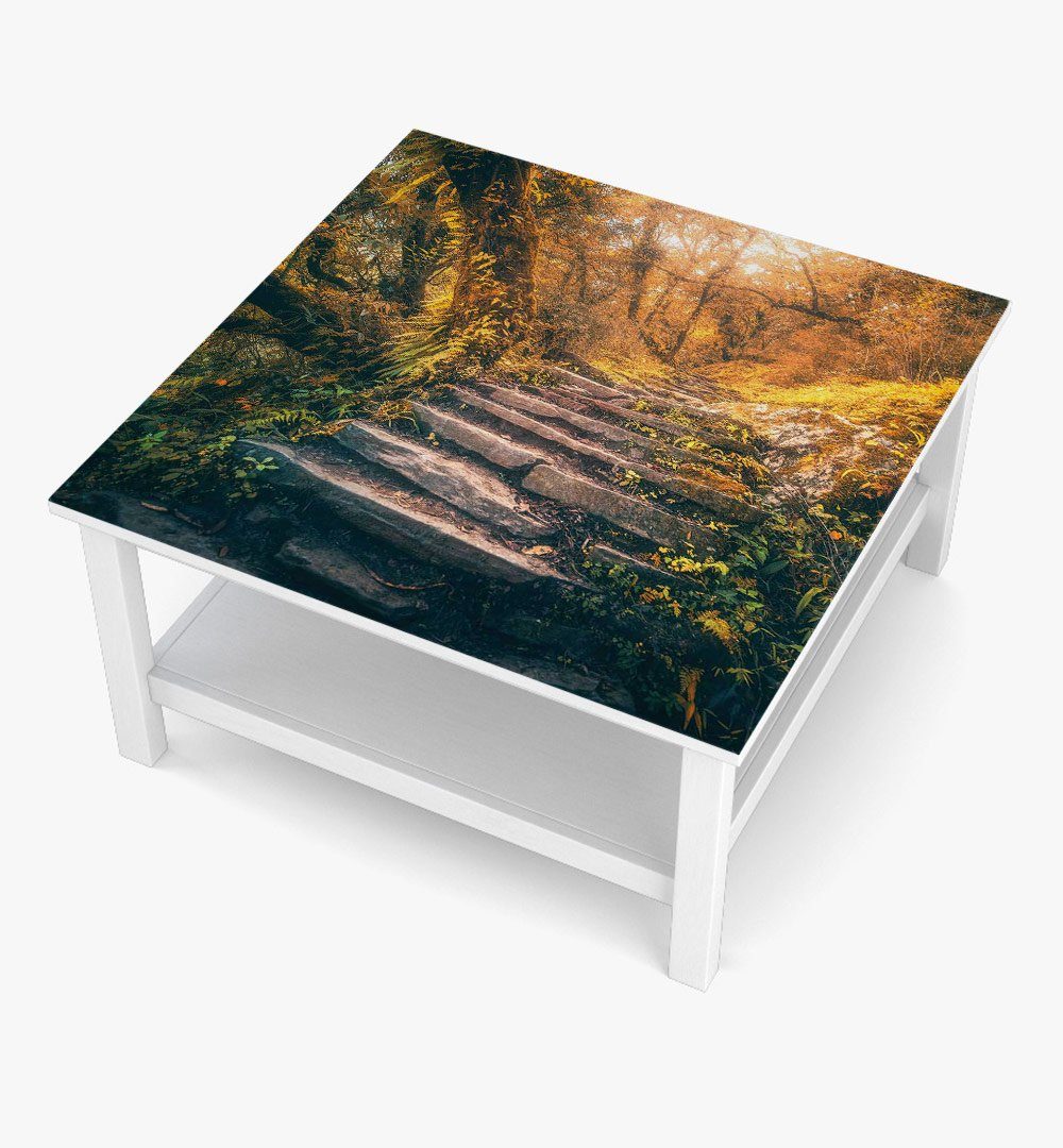 Tischfolie Waldweg im Herbst Bubblefree selbstklebend ist kompatibel mit IKEA Lacktisch.