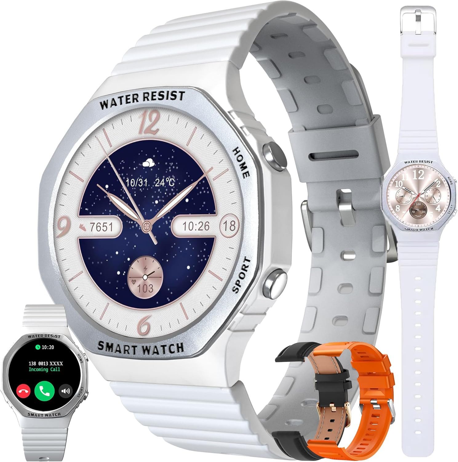 Die Smartwatch bietet ein 1,32-Zoll-Farbdisplay mit ultrahoher Auflösung. Die präzise Touch-Bedienung und drei verschiedene Armbänder (Leder + Silikon) machen sie vielseitig einsetzbar – ob im Alltag, beim Sport oder zu besonderen Anlässen.