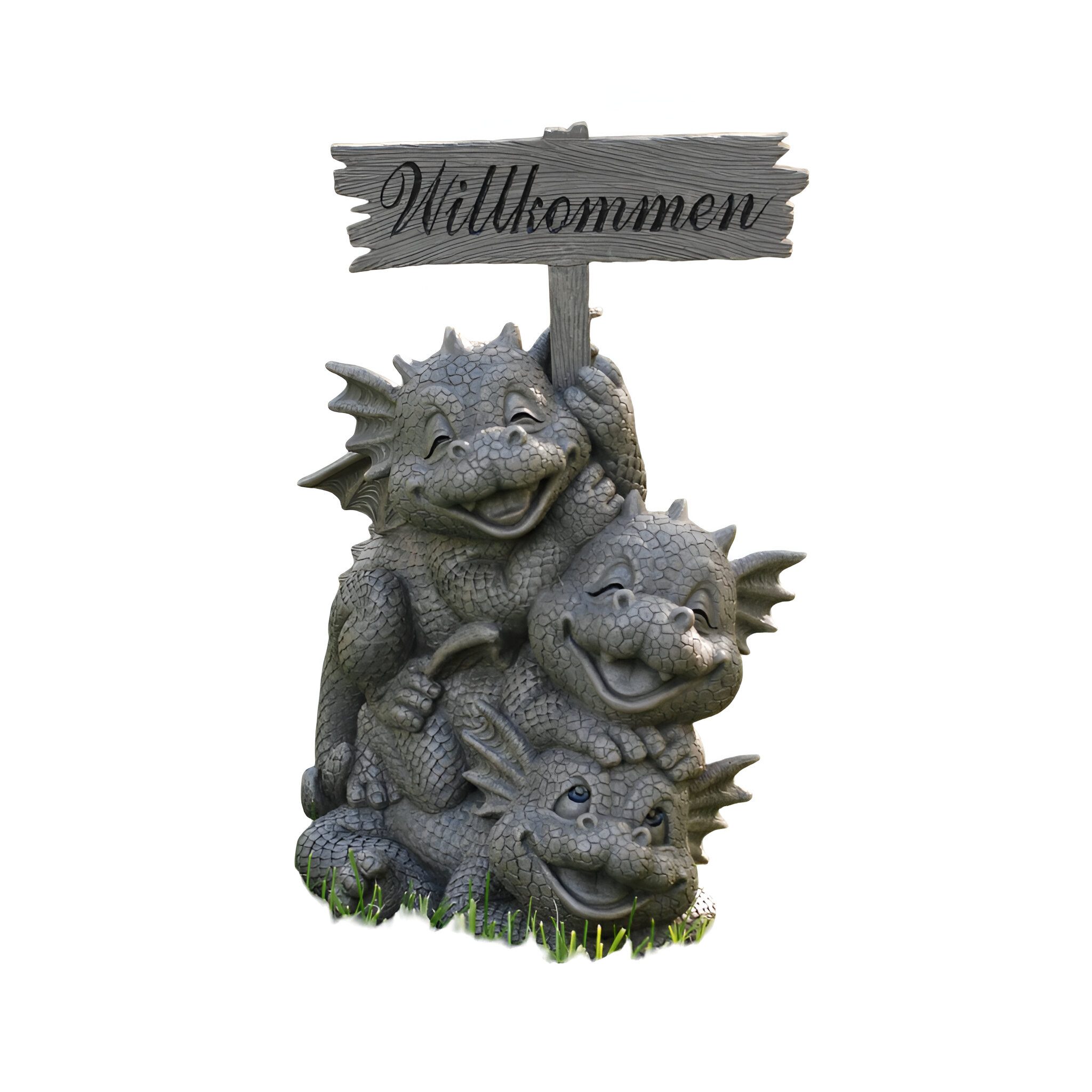 Warnhinweise | Kein Spielzeug. Nur für Dekorationszwecke. Figur ist wetterfest, nicht frostfest. Die Farbe der Figur kann bei regelmässiger Sonneneinstrahlung verblassen. |