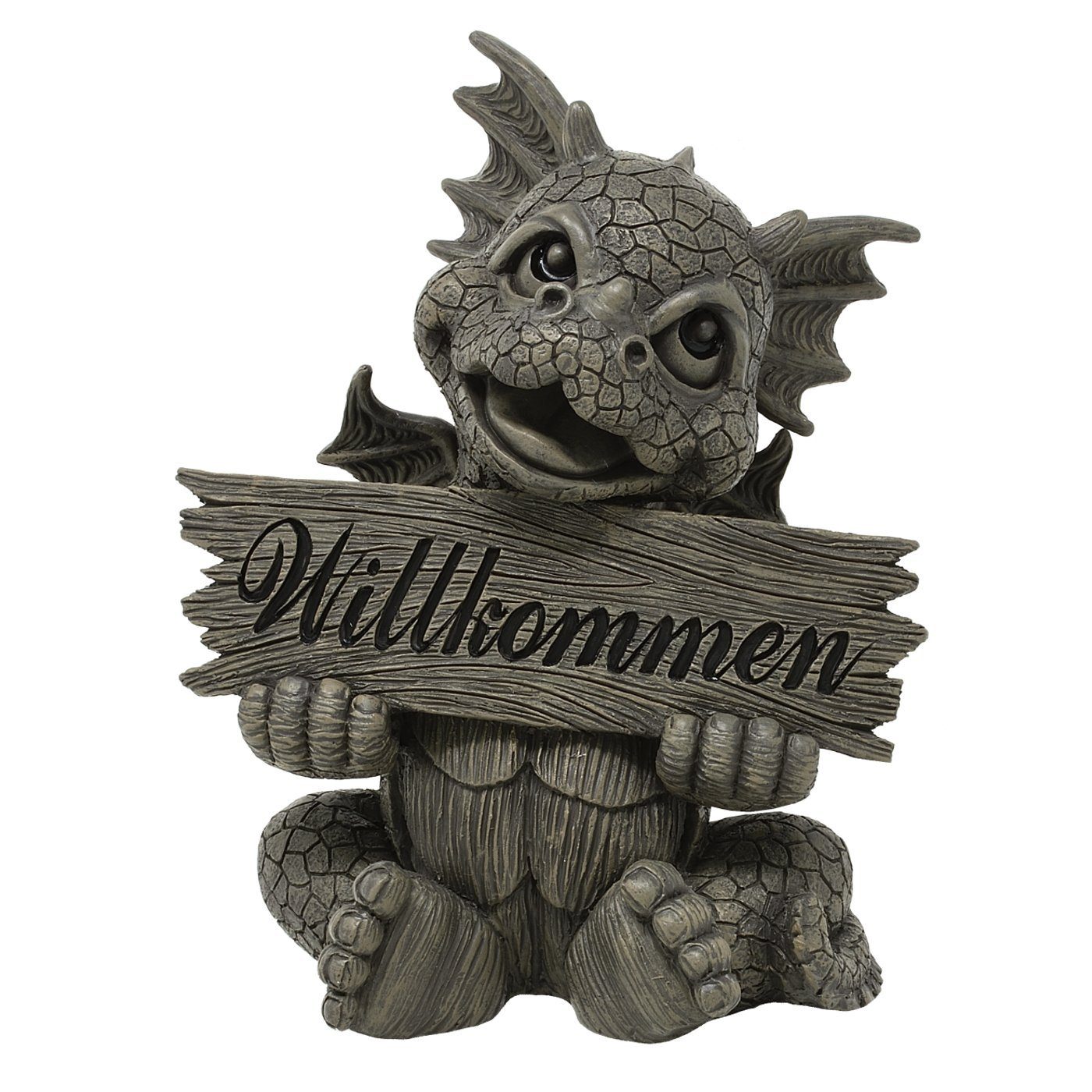 Warnhinweise | Kein Spielzeug. Nur für Dekorationszwecke. Figur ist wetterfest, nicht frostfest. Die Farbe der Figur kann bei regelmässiger Sonneneinstrahlung verblassen. |