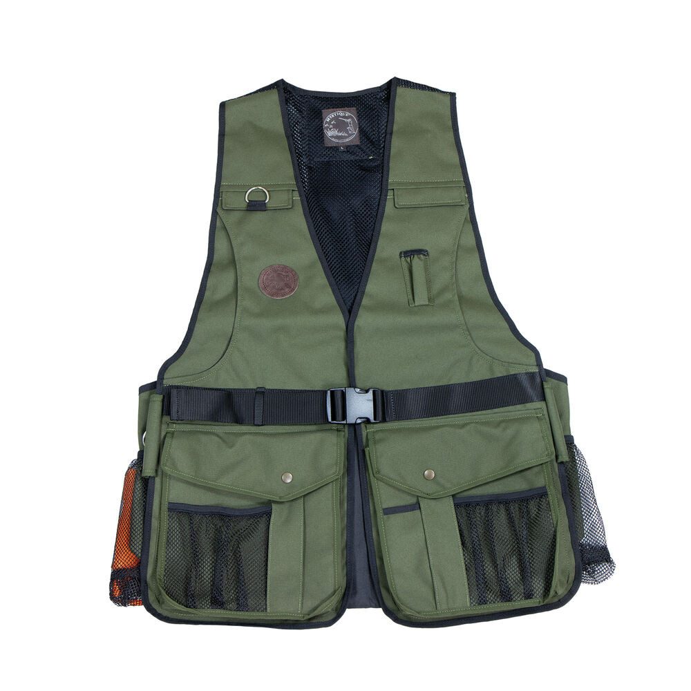 Ihre Weste Profi im Überblick -Netzgewebe am Rücken für perfekte Luftzirkulation an heißen Tagen -große Rückentasche für Dummies -Handtaschen zum Schutz der Hände integrierter Innentaschen -abnehmbare Sicherungsteile im vorderen und hinteren Teil -Ring für Startnummer -zwei Karabiner für Zubehör wie Reisetrinknapf, usw. -Abnehmbare Blende auf der Rückseite -beschichtetes Material, welches leicht zu reinigen ist -Farben: khaki, braun -Hinweis: Diese Weste fällt groß aus, ggf. eine Nummer kleiner verwenden, falls sie nicht über einer dicken Jacke getragen werden soll.Das besondere Material