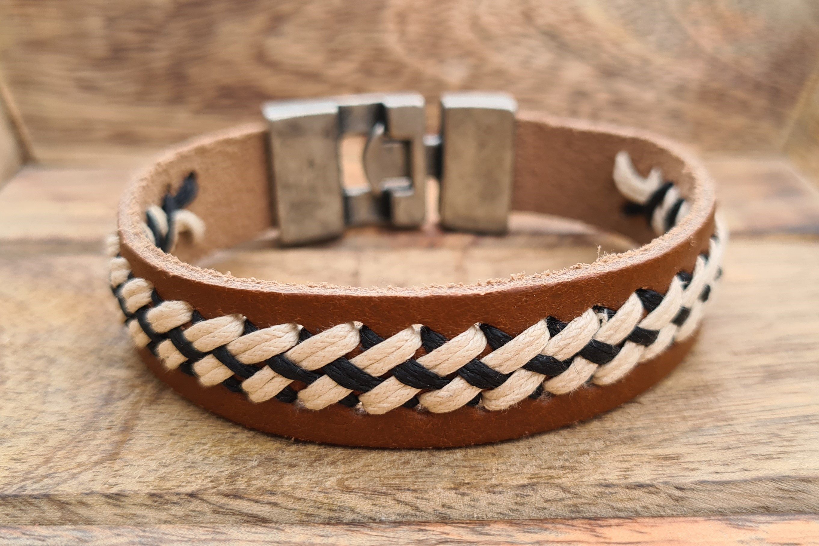 Wir bieten Ihnen beste Qualität und höchsten Tragekomfort bei unserem Lederarmband Keine Kompromisse, weil wir erst zufrieden sind wenn Sie es sind! Modernes und zeitloses Armband für Herren. Das elegante Lederarmband ist aus geflochtenem Echtleder in Handarbeit angefertigt worden. Schöne und hochwertige Verarbeitung! Das Armband ist sehr robust, pflegeleicht und damit auch für den Arbeitsalltag geeignet. Das Armband ist ein richtiger Hingucker und kann mit jeglichen Outfits kombiniert werden. Egal ob einzeln am Handgelenk oder als Ergänzung zu Ihrer Armbanduhr. Das elegante Lederarmband besteht aus Echtleder und einem schönen Verschluss im Vintage Stil. Der Verschluss ermöglicht ein bequemes uns sicheres verschließen des Armbands. Das Armband wird mit einer wunderschönen handangefertigten Schmuckschachtel geliefert. Das Lederarmband ist die perfekte Geschenkidee für Freunde oder Familie zum Geburtstag, Jahrestag, Hochzeitstag, Weihnachten oder Valentinstag.