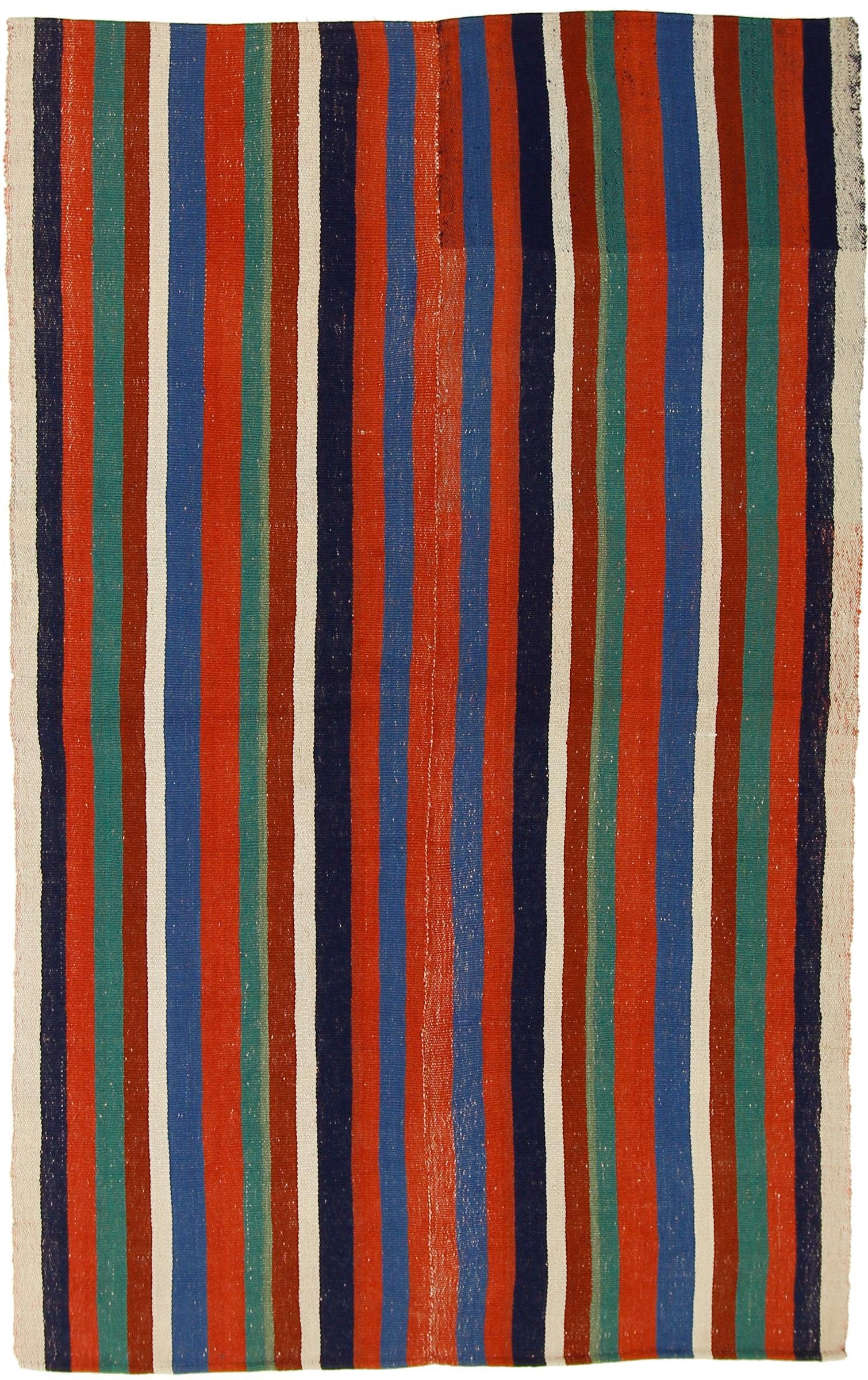 Dieser Kelim wurde von Hand aus natürlicher Wolle gewebt. Kelims erfreuten sich in den letzten Jahren großer Beliebtheit aufgrund ihrer lebendigen Farben und ihrer zeitlosen geometrischen Designs. Darüber hinaus verkörpert dieser Kelim eine jahrhundertealte Handwerkskunst. Er stammt aus dem Land Persien/Iran, das für eine lange Tradition der Teppichknüpfung und -weberei bekannt ist. Dieser Teppich wiegt nur 4.00 kg und ist damit leicht genug, um ihn schnell in einem anderen Raum zu platzieren oder ihn sogar als Decke oder Wandteppich zu verwenden. Der Ursprung dieses Teppichs wird in einem separaten Zertifikat bestätigt.