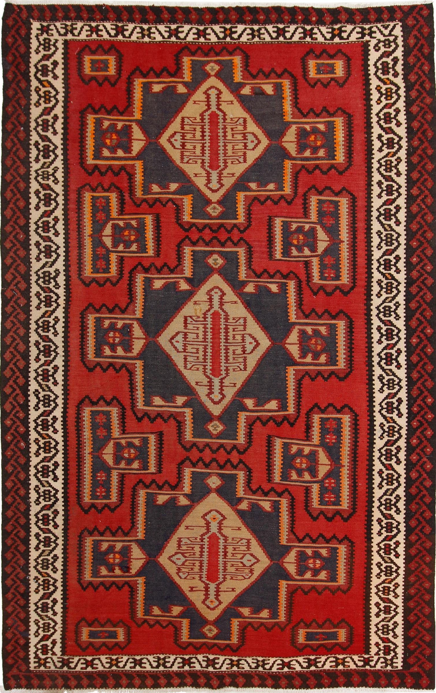 Dieser Kelim wurde von Hand aus natürlicher Wolle gewebt. Kelims erfreuten sich in den letzten Jahren großer Beliebtheit aufgrund ihrer lebendigen Farben und ihrer zeitlosen geometrischen Designs. Darüber hinaus verkörpert dieser Kelim eine jahrhundertealte Handwerkskunst. Er stammt aus dem Land Persien/Iran, das für eine lange Tradition der Teppichknüpfung und -weberei bekannt ist. Dieser Teppich wiegt nur 9.00 kg und ist damit leicht genug, um ihn schnell in einem anderen Raum zu platzieren oder ihn sogar als Decke oder Wandteppich zu verwenden. Der Ursprung dieses Teppichs wird in einem separaten Zertifikat bestätigt.