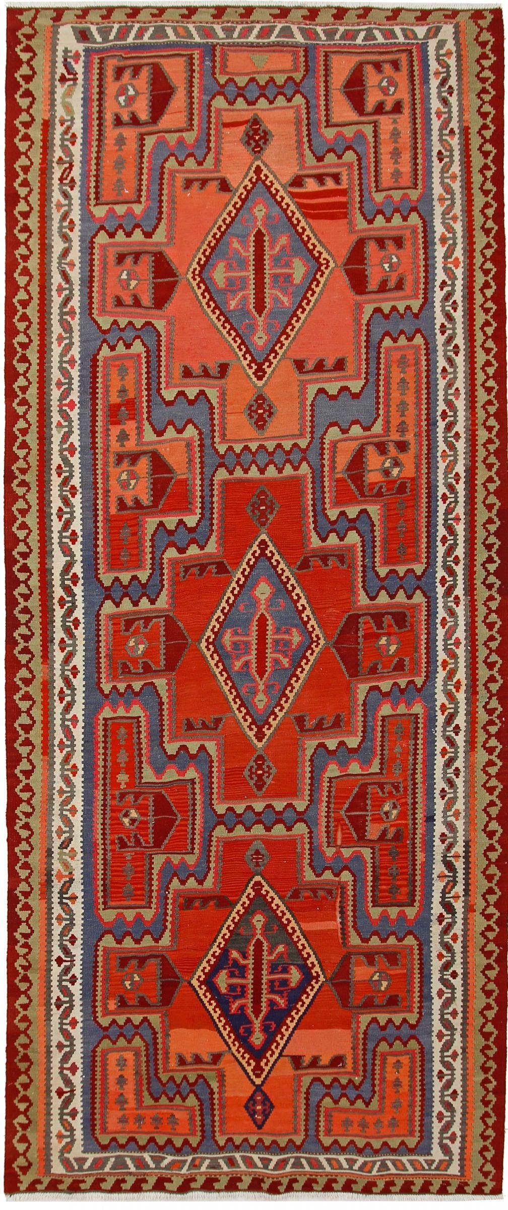 Dieser Kelim wurde von Hand aus natürlicher Wolle gewebt. Kelims erfreuten sich in den letzten Jahren großer Beliebtheit aufgrund ihrer lebendigen Farben und ihrer zeitlosen geometrischen Designs. Darüber hinaus verkörpert dieser Kelim eine jahrhundertealte Handwerkskunst. Er stammt aus dem Land Persien/Iran, das für eine lange Tradition der Teppichknüpfung und -weberei bekannt ist. Dieser Teppich wiegt nur 9.00 kg und ist damit leicht genug, um ihn schnell in einem anderen Raum zu platzieren oder ihn sogar als Decke oder Wandteppich zu verwenden. Der Ursprung dieses Teppichs wird in einem separaten Zertifikat bestätigt.