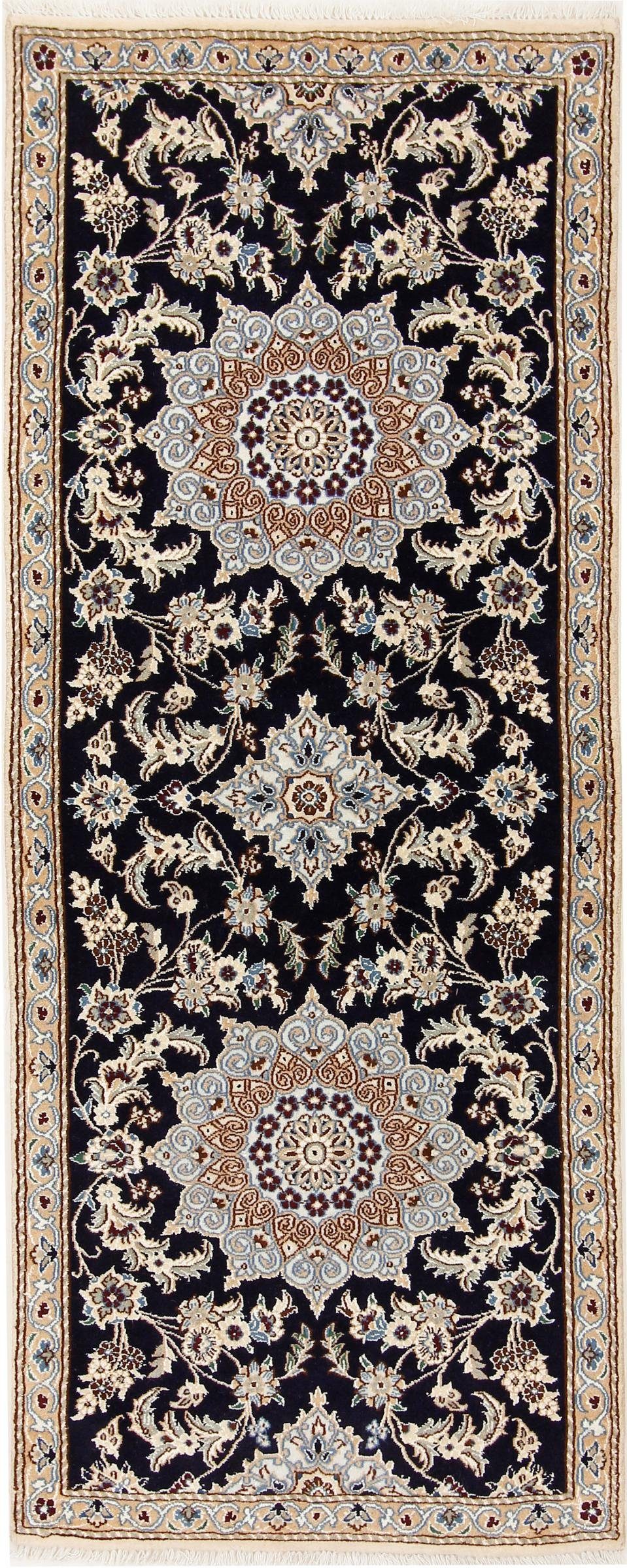 Dieser persische Nain 9La Teppich wurde von Hand geknüpft, auf die traditionellste Art und Weise, Teppiche herzustellen. Mit seiner zertifizierten Herkunft verkörpert der Nain 9La Teppich ein Höchstmaß an Kunsthandwerk und die wahrscheinlich aufwändigste Art, einen Teppich herzustellen. Es besitzt eine Dichte von 450000 / m² und ist damit ein sehr feines Kunstwerk mit einer langen Lebensdauer. Der Teppich wurde über einen Zeitraum von mehreren Monaten geknüpft und hat eine Размер von 199 mal 80. Dank der alten Handwerkskunst hat er eine Dicke von nur 8 mm, ein Indikator für hohe Qualität. Der Teppich besteht aus Wolle und wurde mit natürlichen Farbstoffen gefärbt. Dank des natürlichen Materials ist dieser Perserteppich ideal auch für Fußbodenheizungen und Kinder. Er wiegt 6.00 kg und befindet sich im perfekten Zustand. Die Herkunft des Teppichs wird von unseren Experten durch ein offizielles Zertifikat bestätigt.
