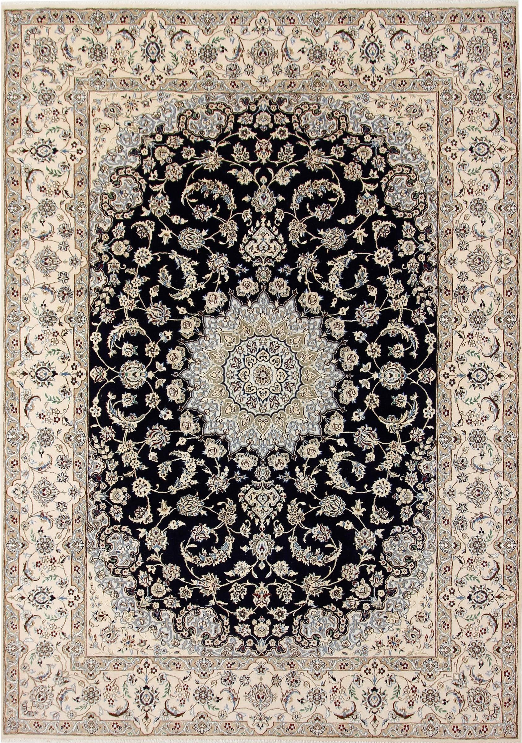 Dieser persische Nain 9La Teppich wurde von Hand geknüpft, auf die traditionellste Art und Weise, Teppiche herzustellen. Mit seiner zertifizierten Herkunft verkörpert der Nain 9La Teppich ein Höchstmaß an Kunsthandwerk und die wahrscheinlich aufwändigste Art, einen Teppich herzustellen. Es besitzt eine Dichte von 450000 / m² und ist damit ein sehr feines Kunstwerk mit einer langen Lebensdauer. Der Teppich wurde über einen Zeitraum von mehreren Monaten geknüpft und hat eine Размер von 351 mal 244. Dank der alten Handwerkskunst hat er eine Dicke von nur 8 mm, ein Indikator für hohe Qualität. Der Teppich besteht aus Wolle mit Seide und wurde mit natürlichen Farbstoffen gefärbt. Dank des natürlichen Materials ist dieser Perserteppich ideal auch für Fußbodenheizungen und Kinder. Er wiegt 30.00 kg und befindet sich im perfekten Zustand. Die Herkunft des Teppichs wird von unseren Experten durch ein offizielles Zertifikat bestätigt.