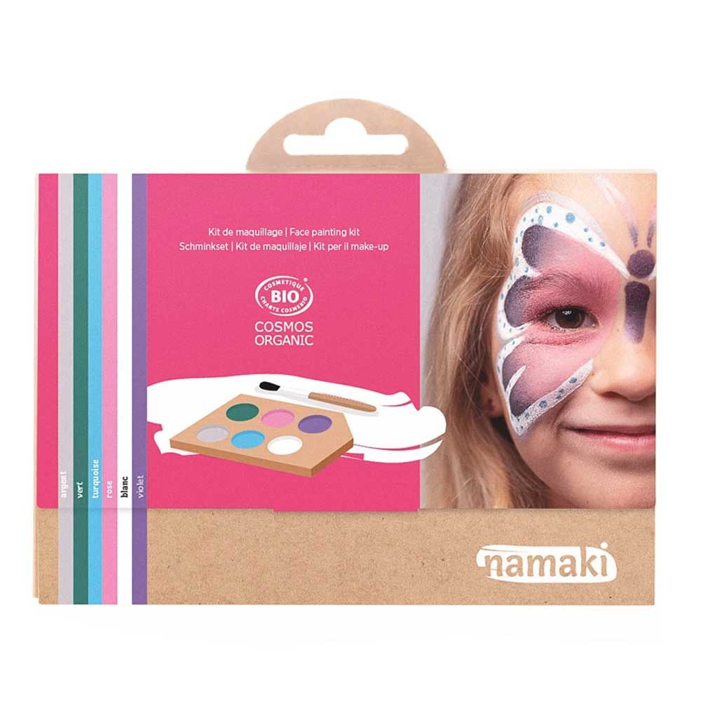 Das Make-up von Namaki wurde so gestaltet, dass es sowohl von Eltern als auch von Kindern leicht zu verwenden ist. Sie kann mit einer Bürste oder einem in etwas Wasser getränkten Schwamm entfernt werden. Das Ergebnis ist eine gouache-ähnliche Textur, die sich leicht auf die Haut auftragen lässt. Wenn das Make-up einmal trocken ist, wird es den meisten Anfragen widerstehen, so dass Kinder (jung und alt) spielen können, ohne Angst zu haben, dass das Make-up verläuft oder die Kleidung verschmutzt. Mit Wasser und etwas milder Seife lässt sich das Make-up leicht entfernen.